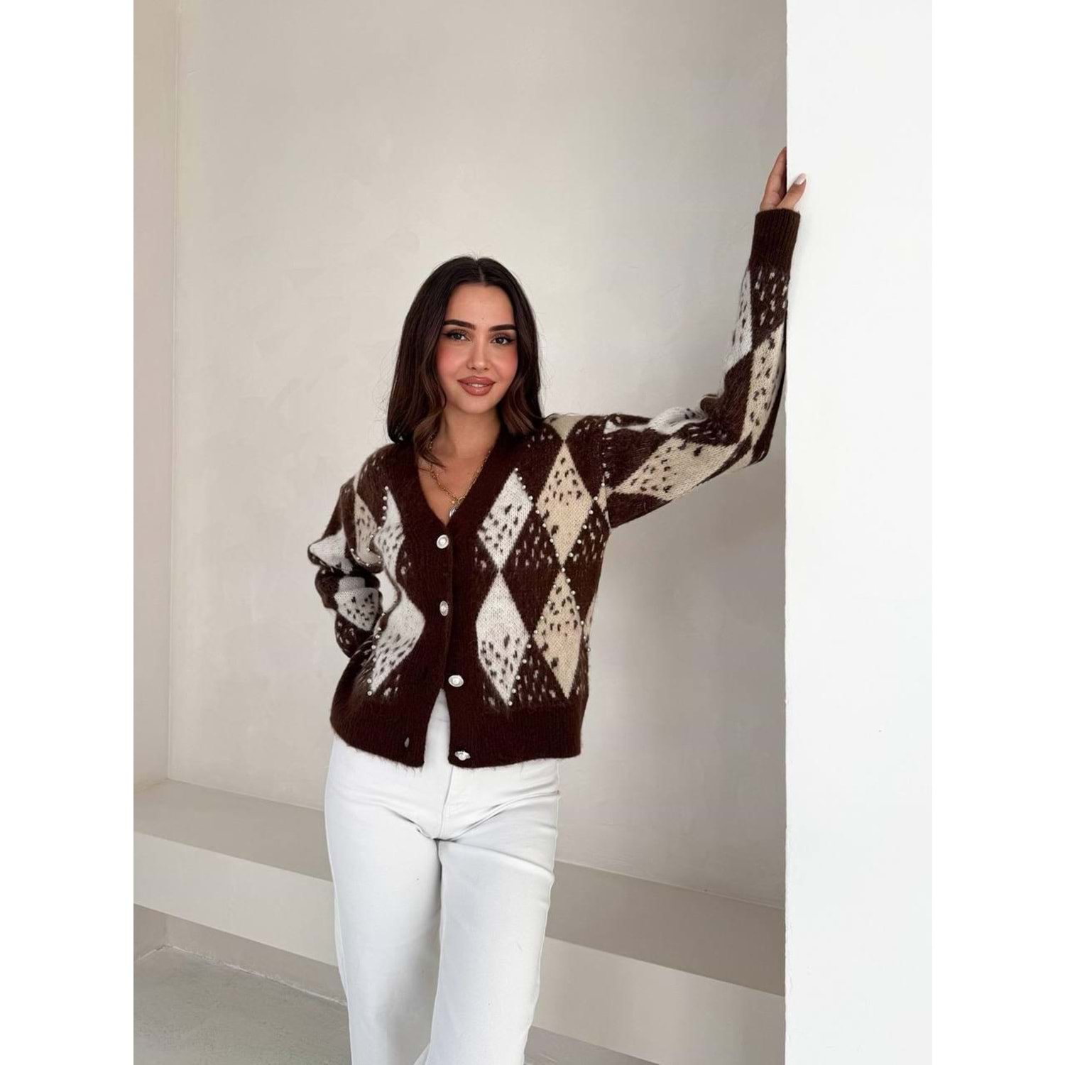 Baklava Desen Hırka 2331 - Acı Kahve - TEK BEDEN