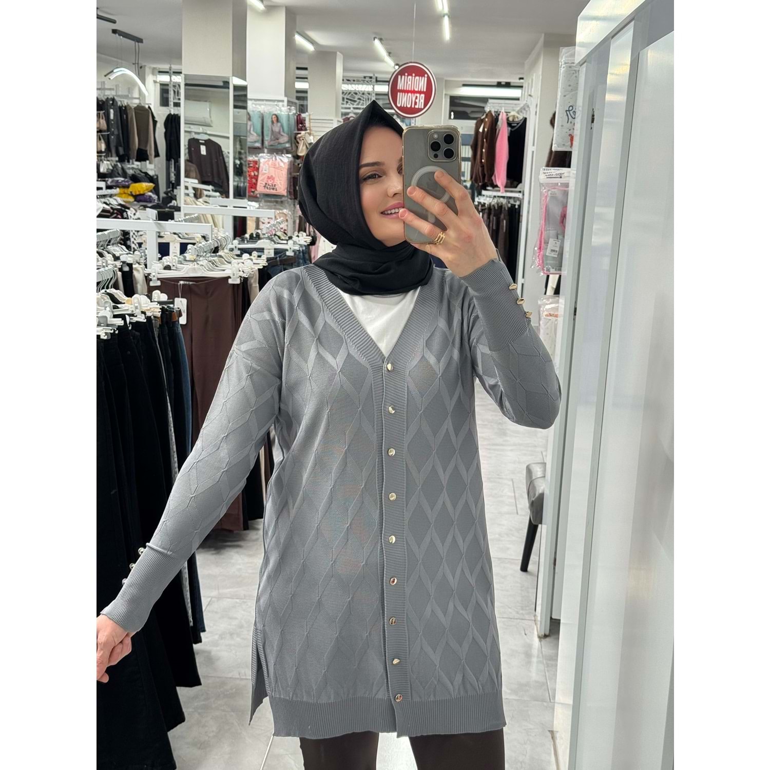 Baklava Desen Merserize Hırka 3290 - Gri - TEK BEDEN - AZRA07406-58692