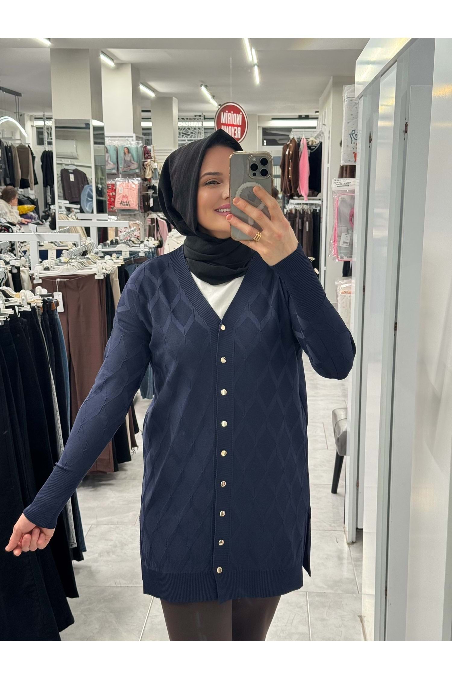 Baklava Desen Merserize Hırka 3290 - Lacivert - TEK BEDEN - AZRA07406-58694