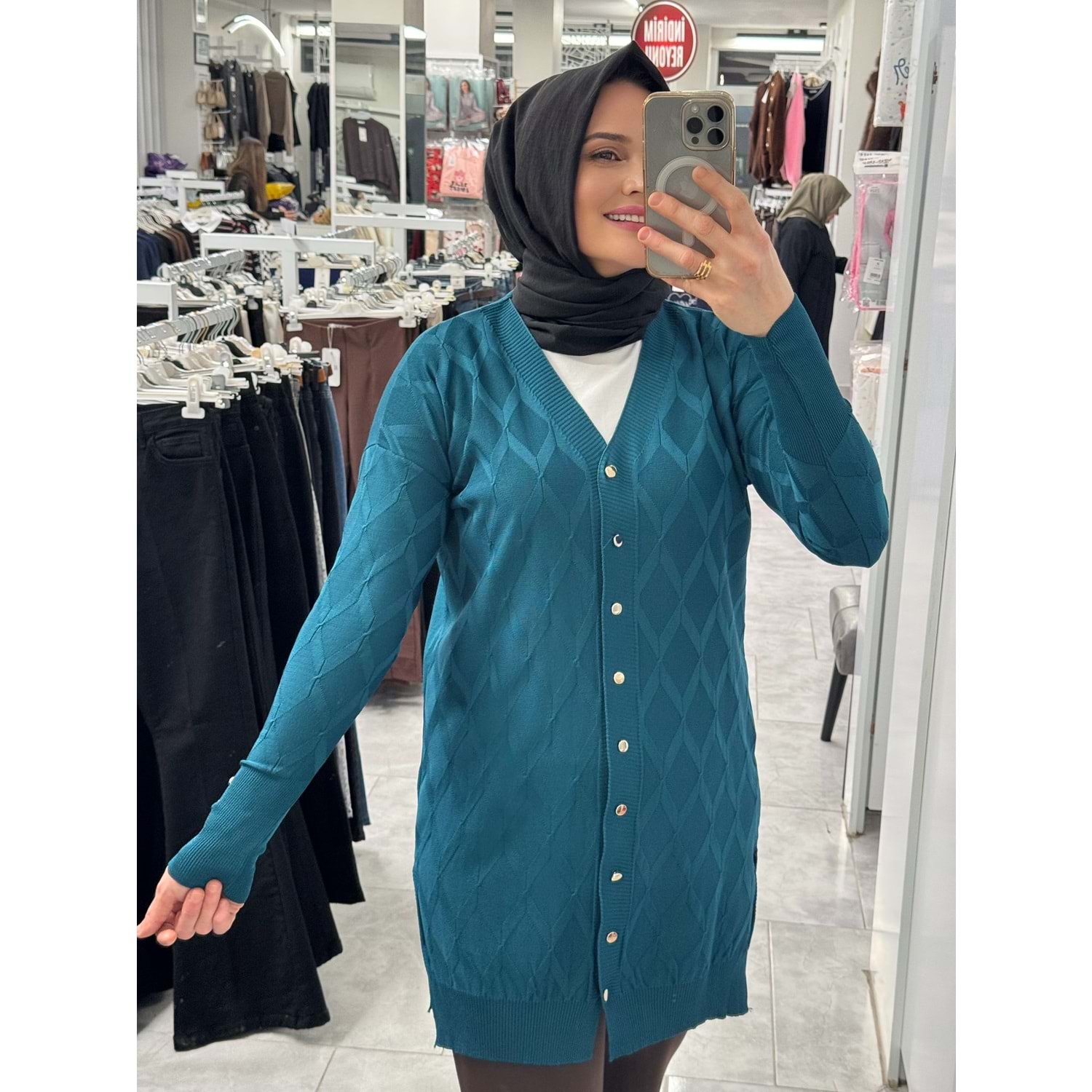 Baklava Desen Merserize Hırka 3290 - Petrol Mavi - TEK BEDEN - AZRA07406-58697