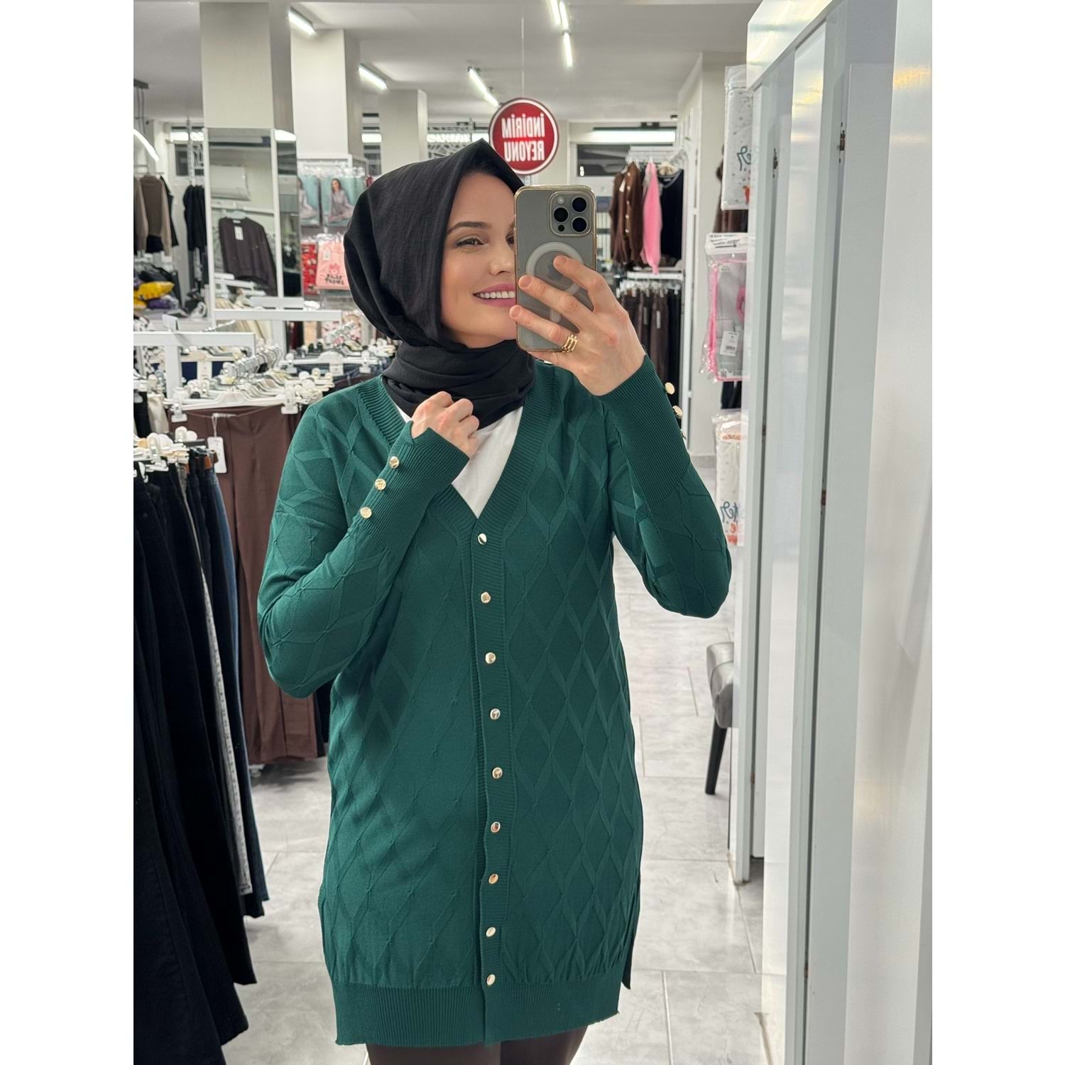 Baklava Desen Merserize Hırka 3290 - Zümrüt Yeşili - TEK BEDEN - AZRA07406-58699