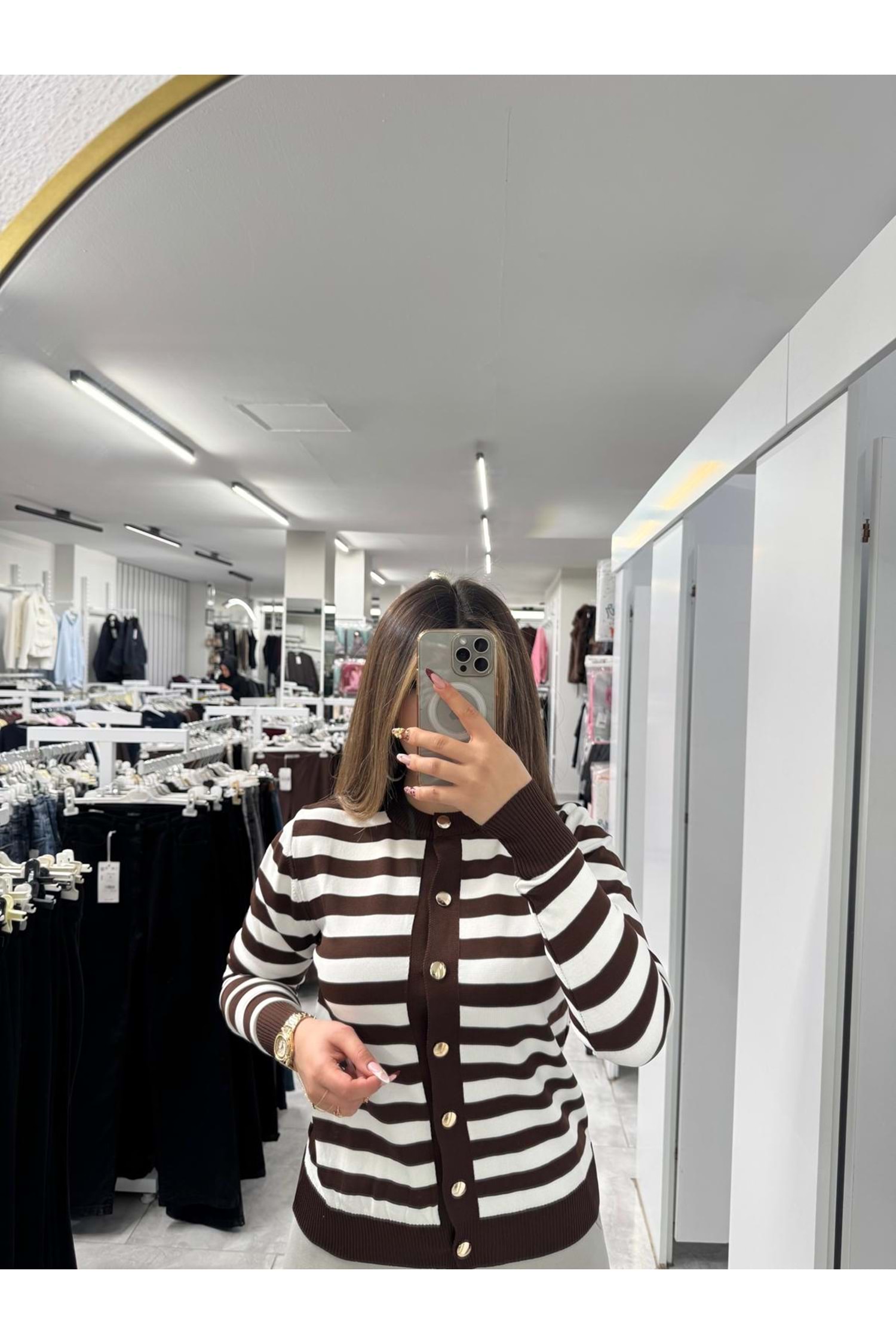 Çizgili Kısa Merserize Hırka 4263 - Acı Kahve - TEK BEDEN - AZRA07404-58675