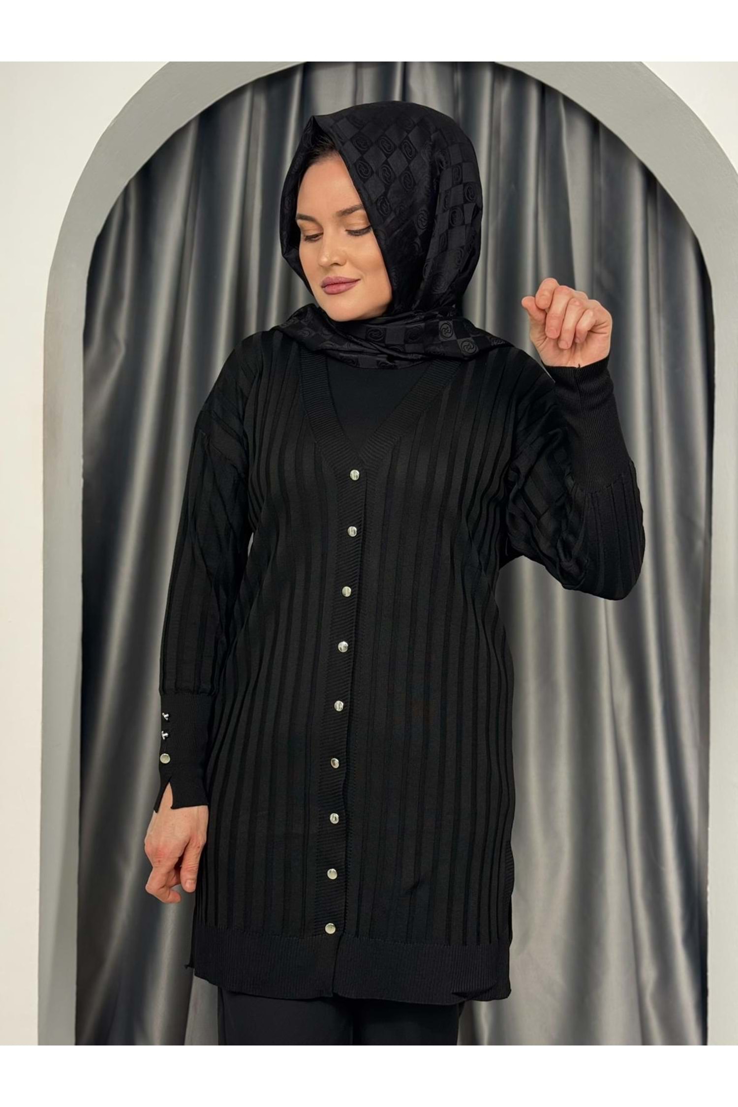 Çizgili Merserize Hırka 3179 - Siyah - TEK BEDEN - AZRA05355-44656