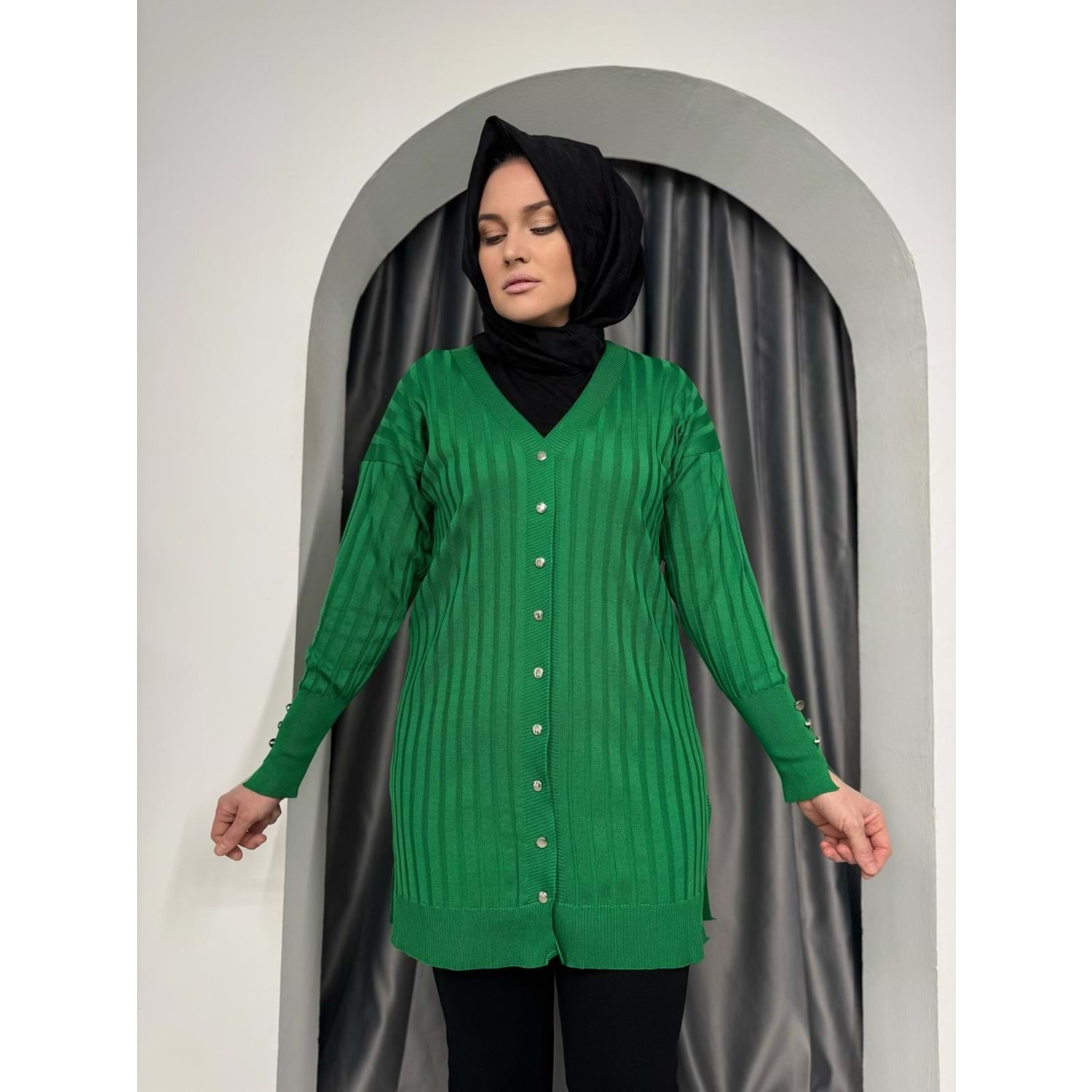 Çizgili Merserize Hırka 3179 - Yeşil - TEK BEDEN - AZRA05355-44658