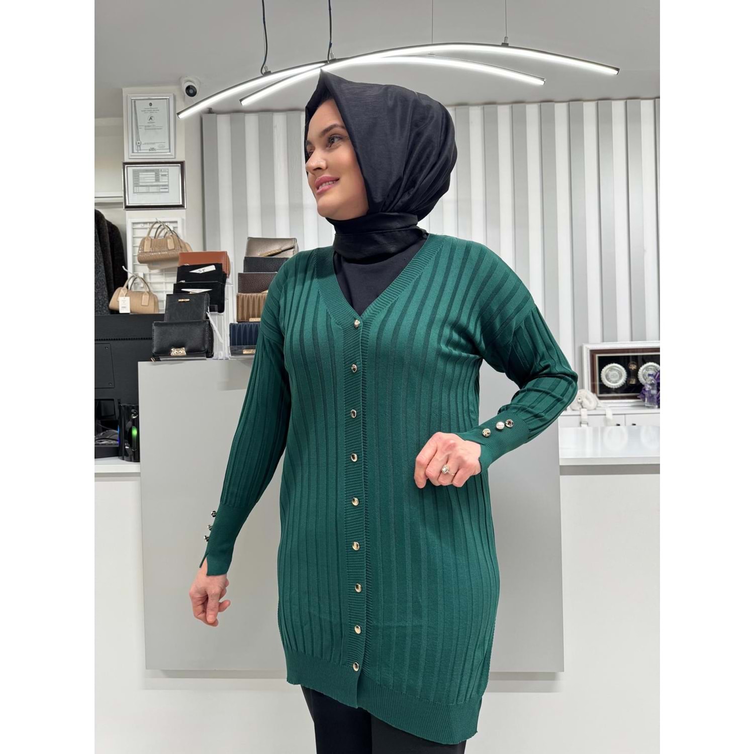 Çizgili Merserize Hırka 3179 - Zümrüt Yeşili - TEK BEDEN - AZRA05355-58682