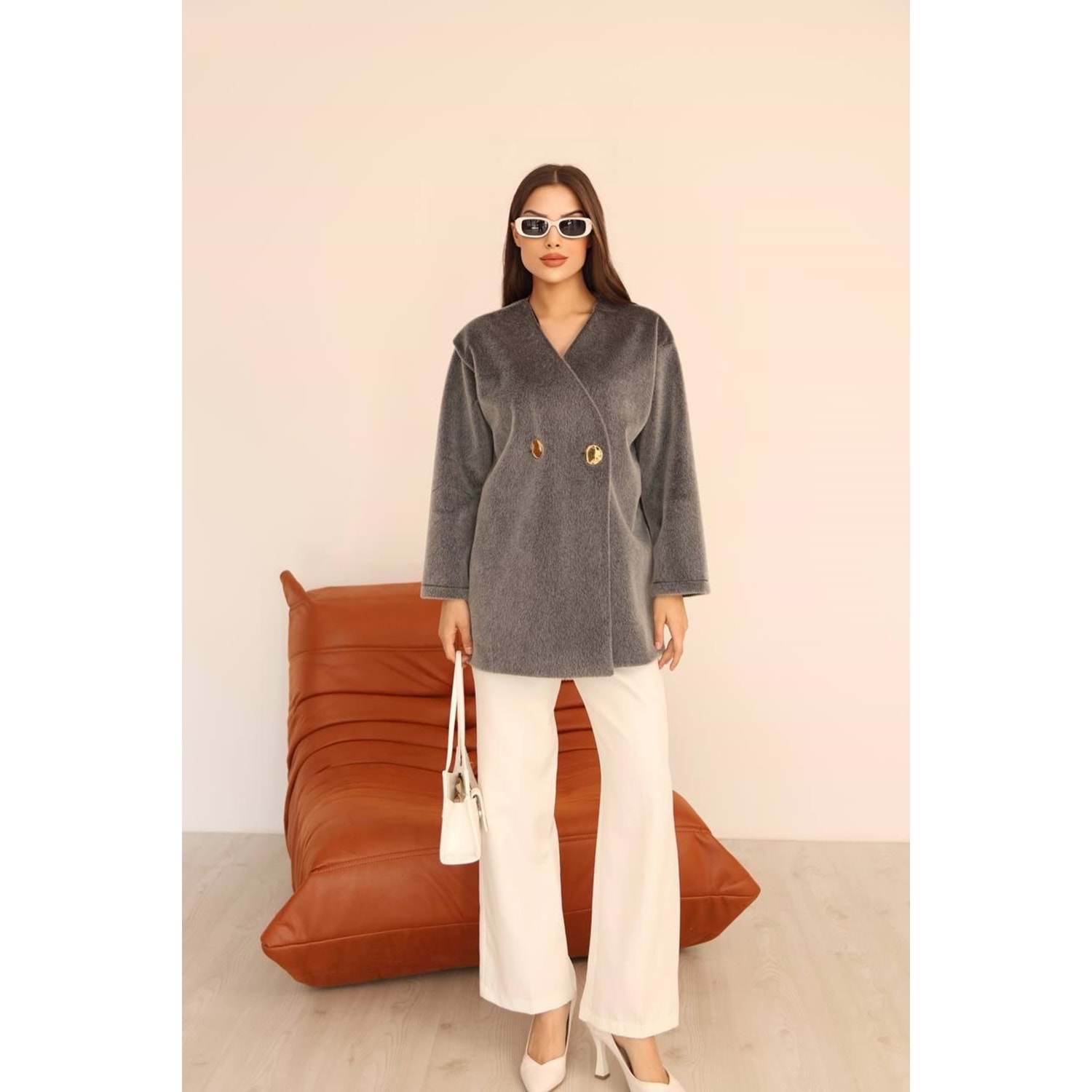 Düğme Detaylı Kürk Hırka 26200 - Gri - L
