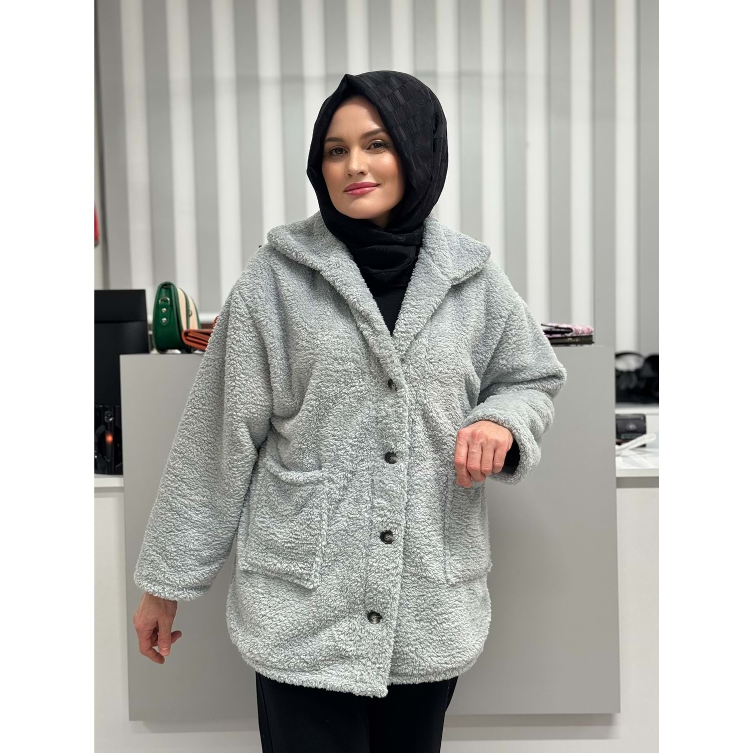 Düğmeli Büyük Cepli Welsoft Hırka 2774 - Gri - TEK BEDEN - AZRA05036-Gri-TEK BEDEN