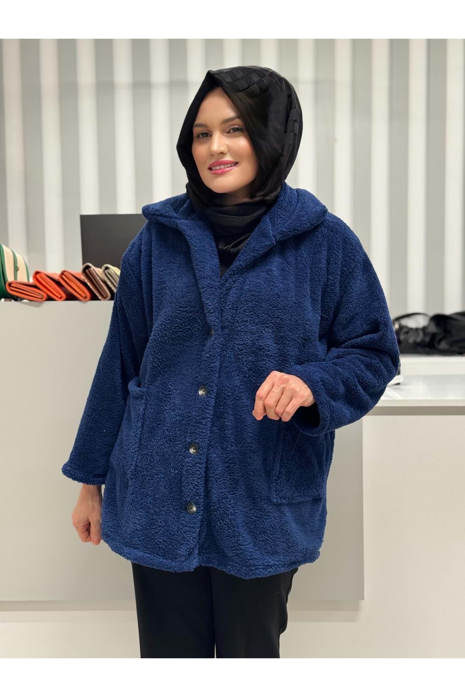 Düğmeli Büyük Cepli Welsoft Hırka 2774 - Lacivert - TEK BEDEN - AZRA05036-55938