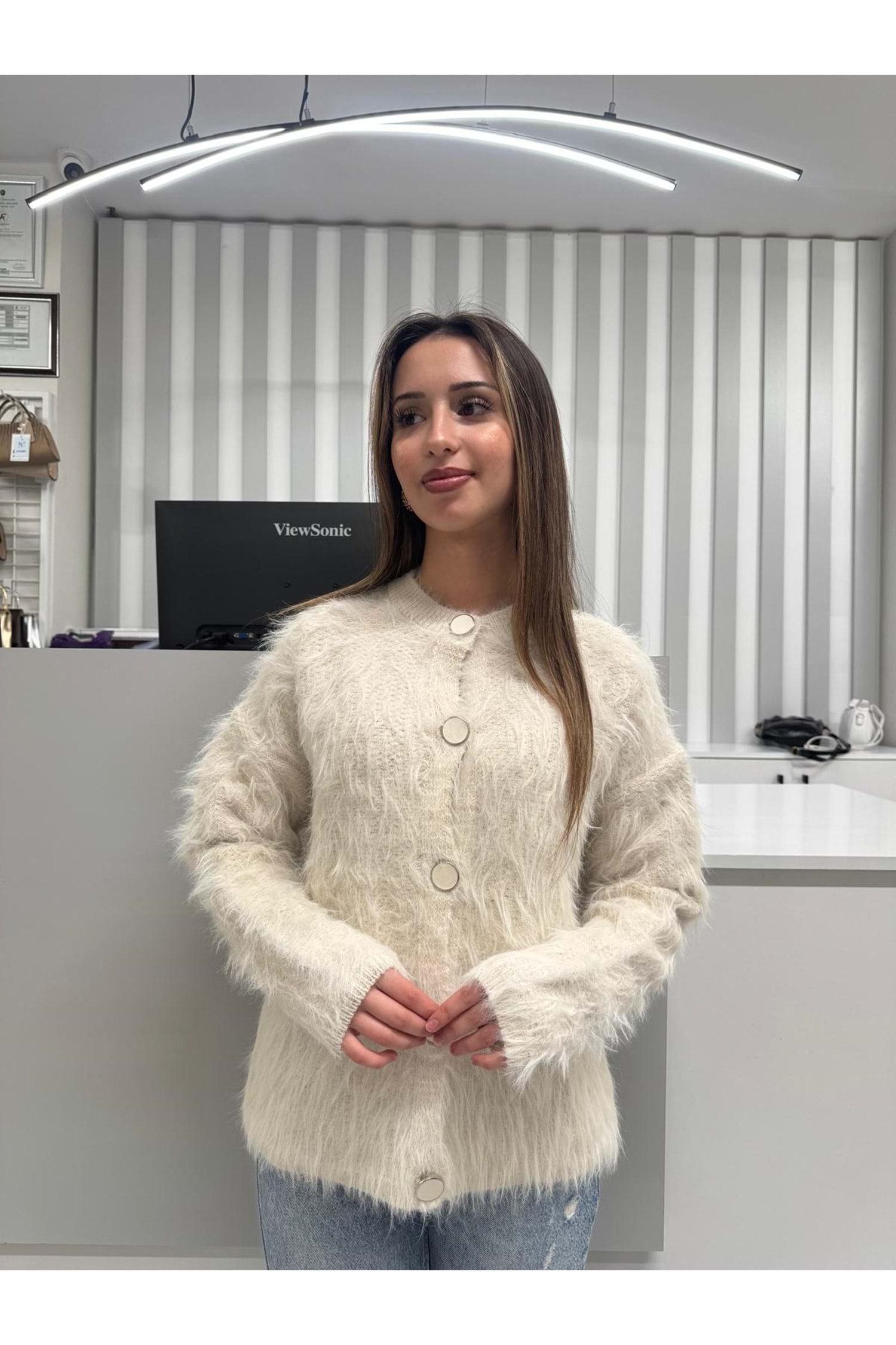 Düğmeli Yün Hırka 1414 - Bej - TEK BEDEN - AZRA07062-56673