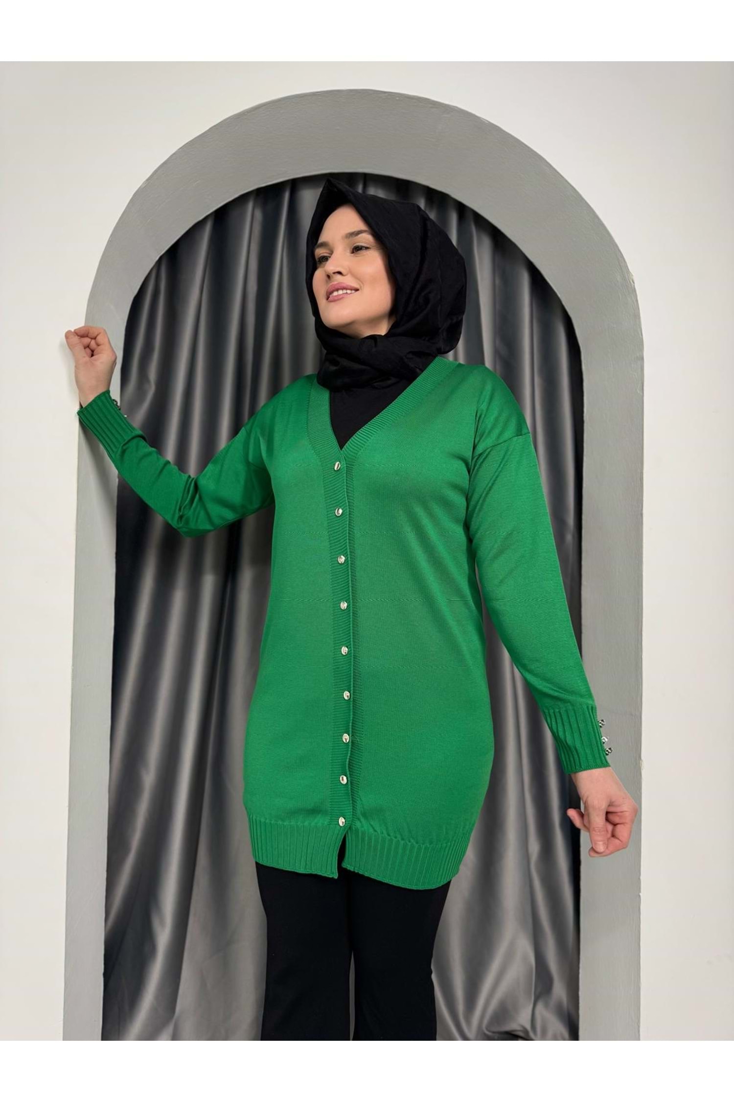 Düz Merserize Hırka 3176 - Yeşil - TEK BEDEN - AZRA05357-44677