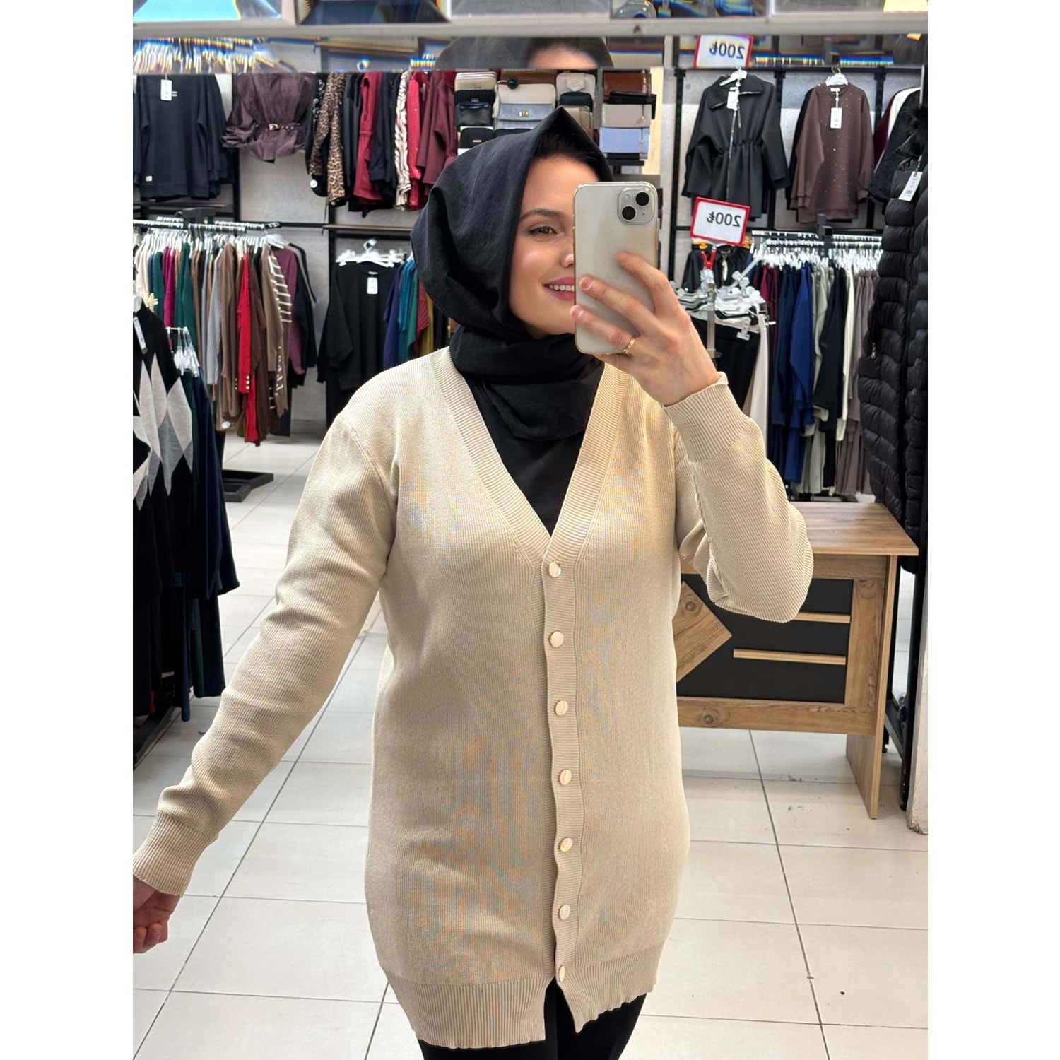 Gold Düğmeli hırka 3285 - Bej - TEK BEDEN