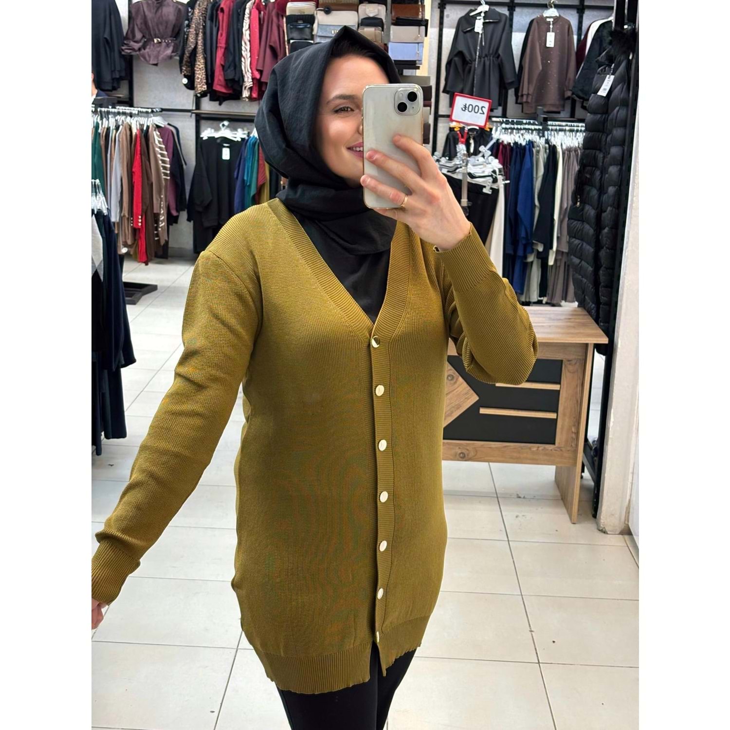 Gold Düğmeli hırka 3285 - Yağ Yeşili - TEK BEDEN