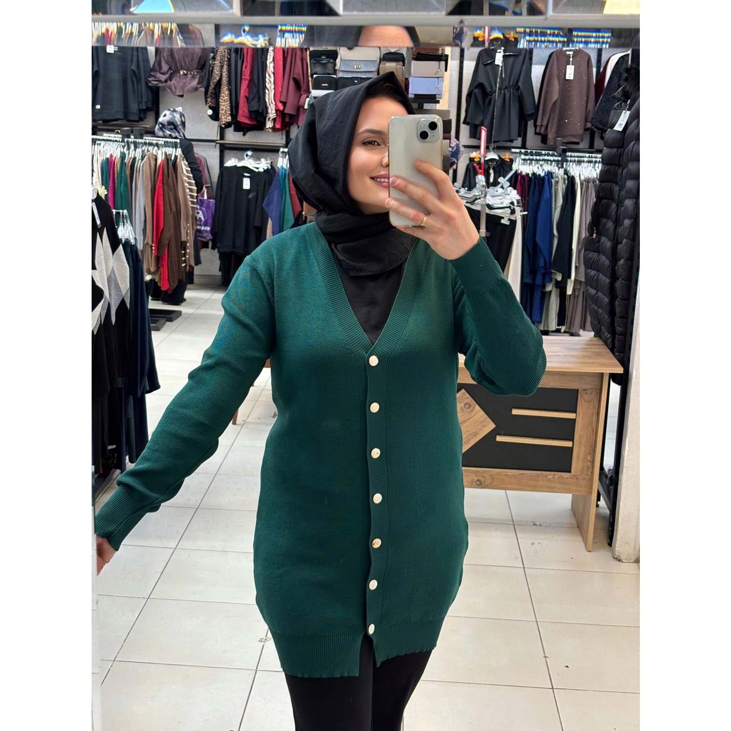 Gold Düğmeli hırka 3285 - Zümrüt Yeşili - TEK BEDEN