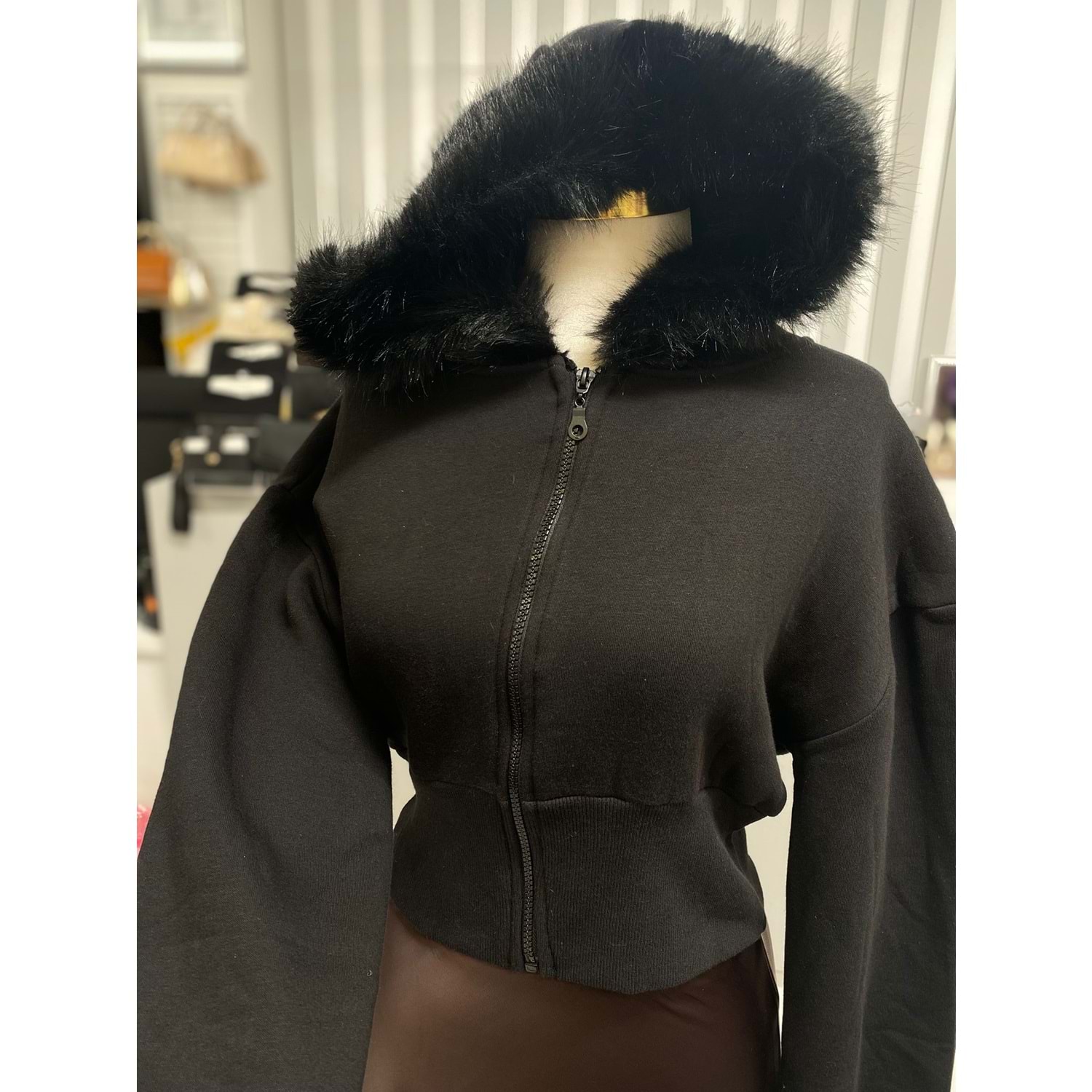 Kapşonlu Tüylü Hırka 10501 - Siyah - S - AZRA07360-Siyah-S