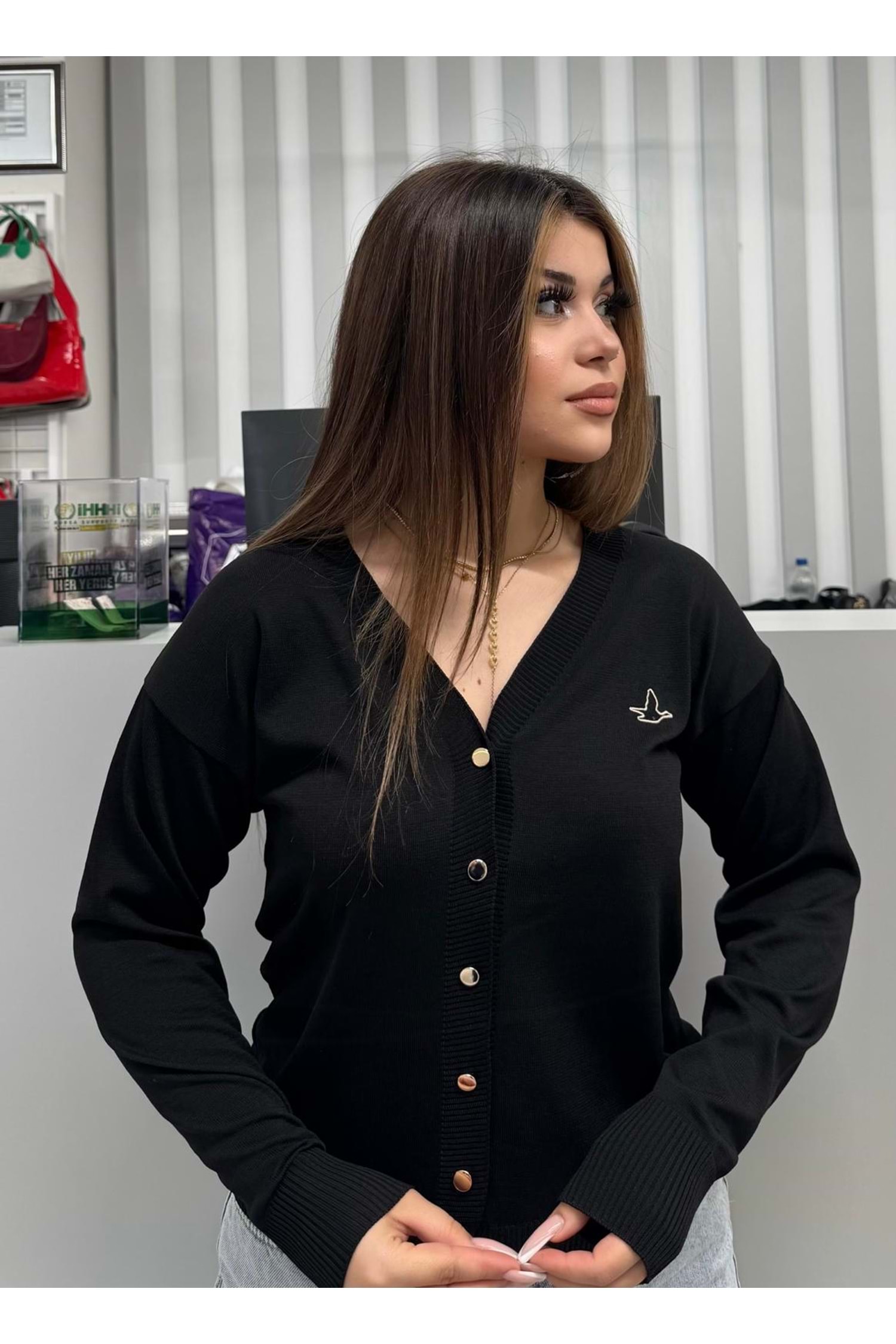 Kısa Merserize Hırka 3247 - Siyah - TEK BEDEN