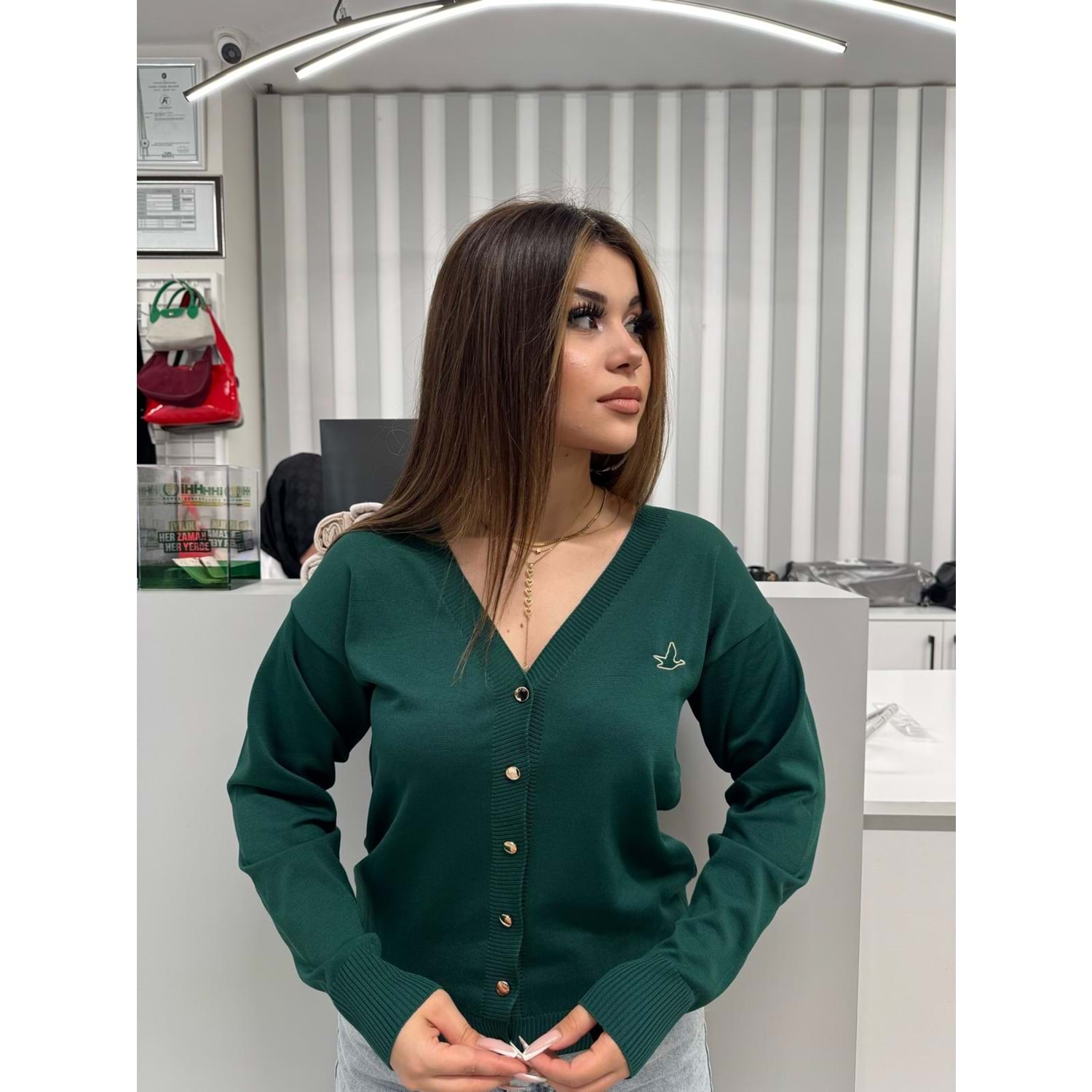 Kısa Merserize Hırka 3247 - Zümrüt Yeşili - TEK BEDEN