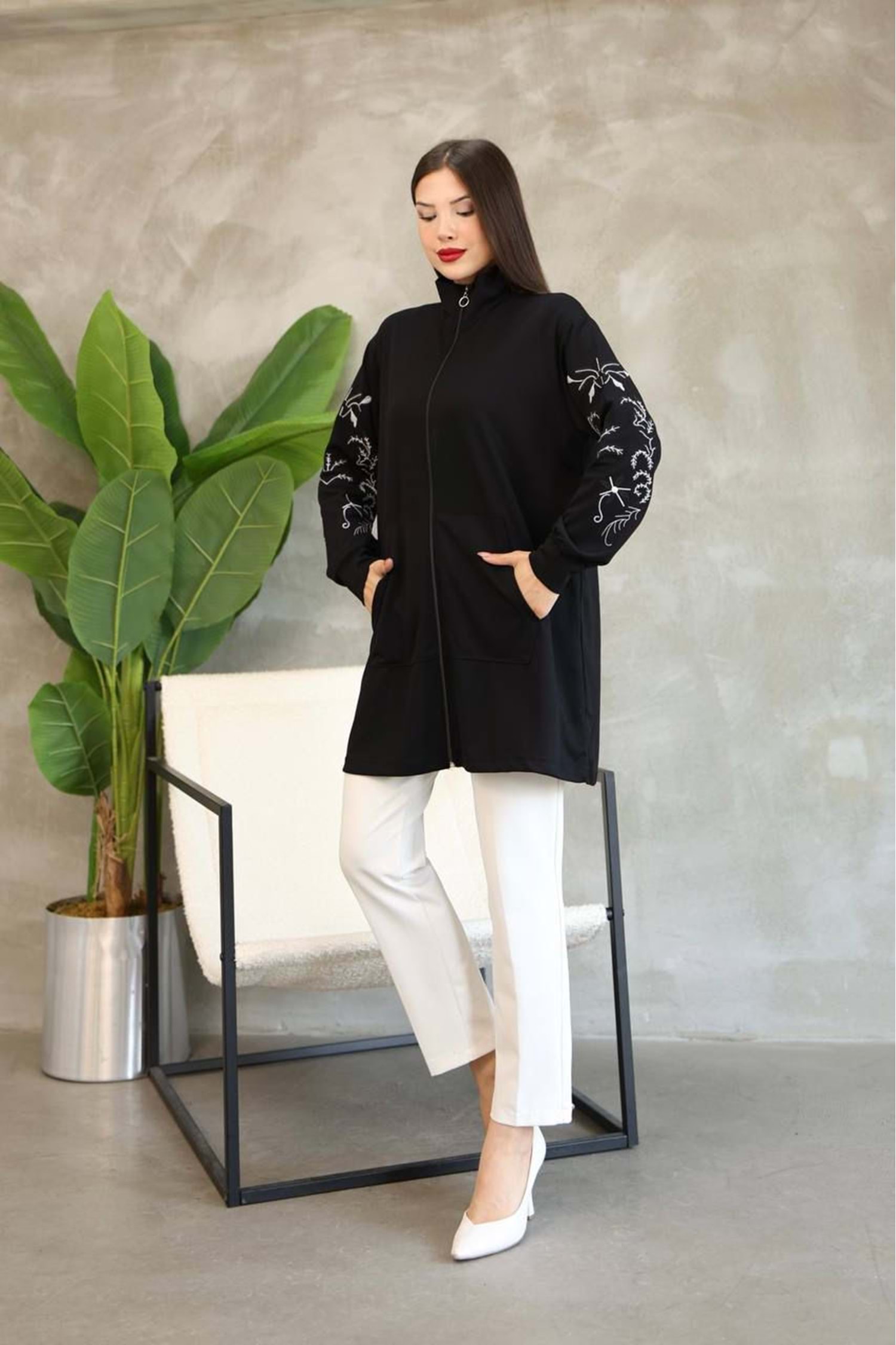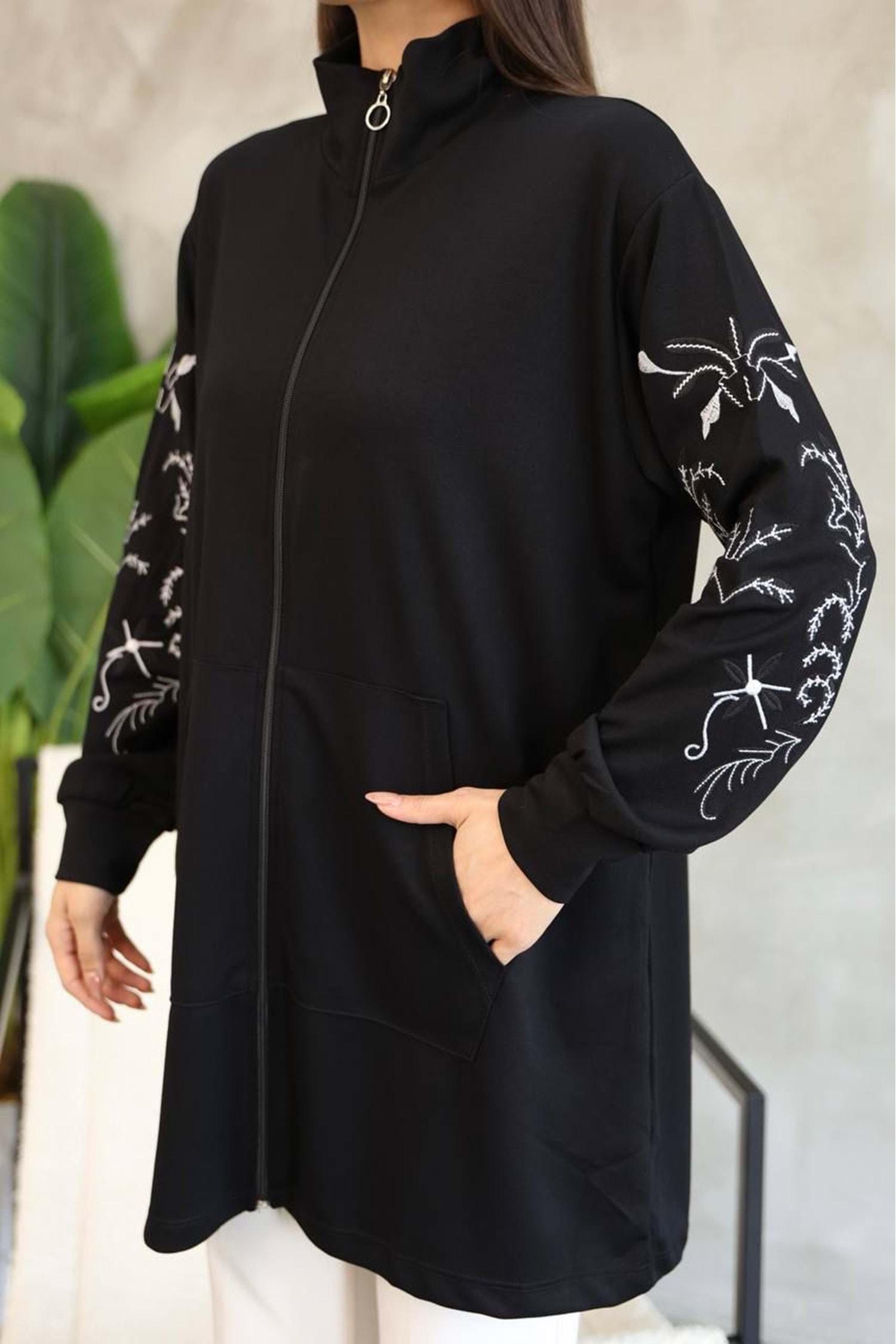 Kolları Nakışlı Hırka 26130 - Siyah - S