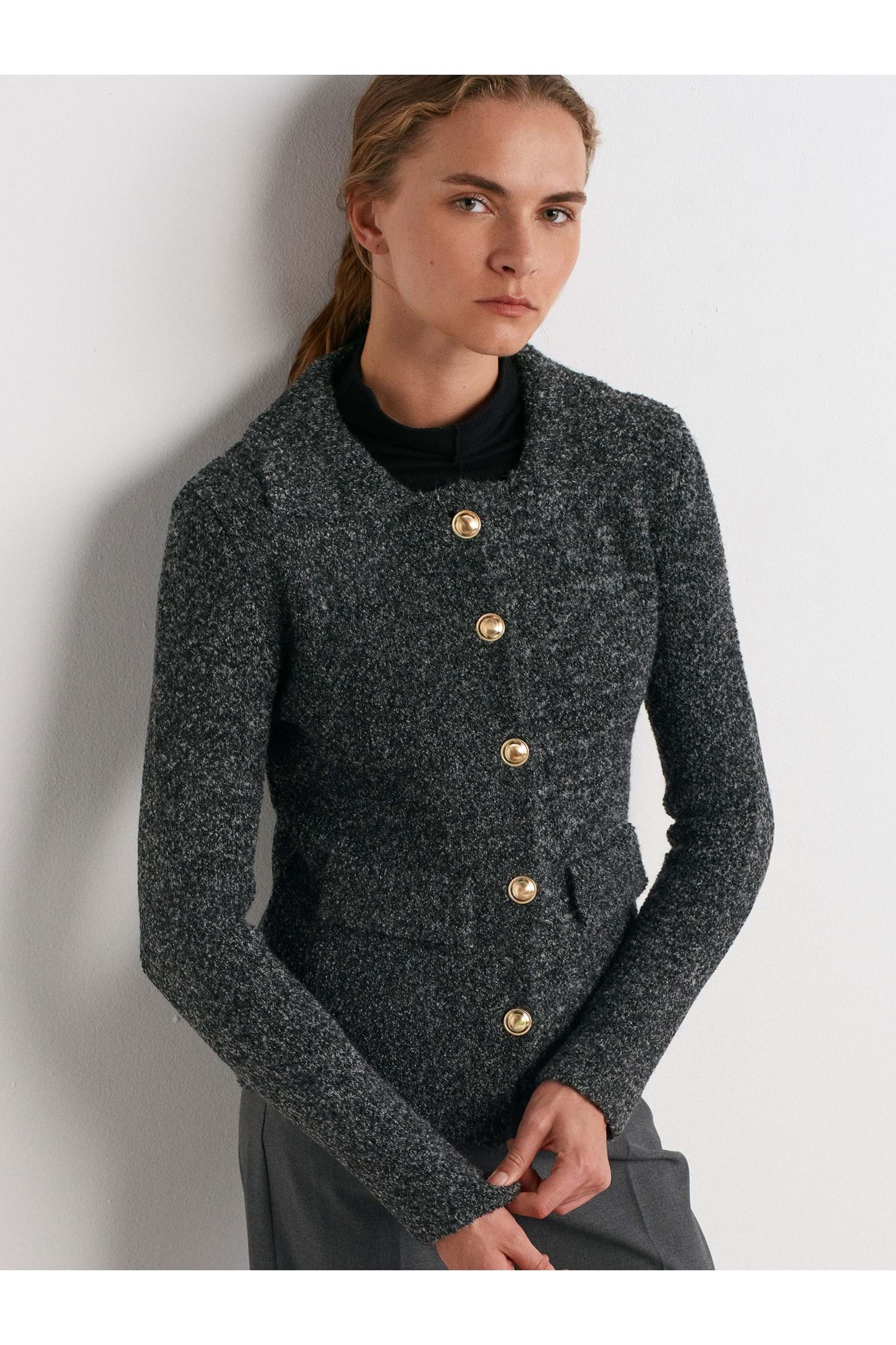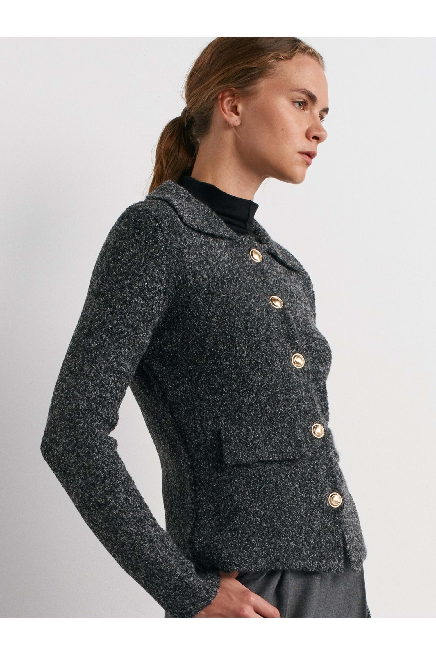 Polo Yaka Düğmeli Cep Detaylı Triko Hırka 60265 - Antrasit - TEK BEDEN