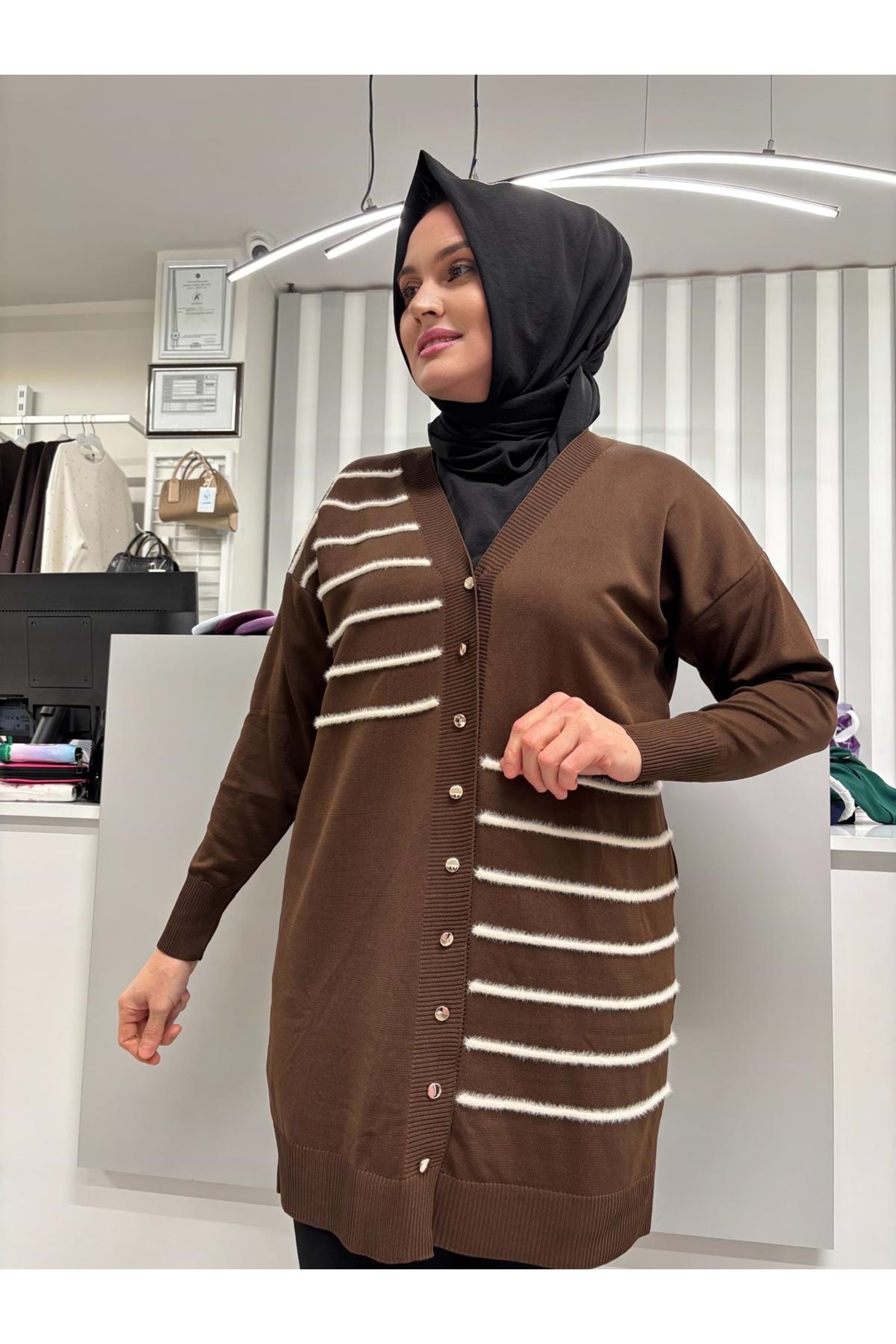 Şerit Tüylü Merserize Hırka 3282 - Acı Kahve - TEK BEDEN - AZRA07178-57315