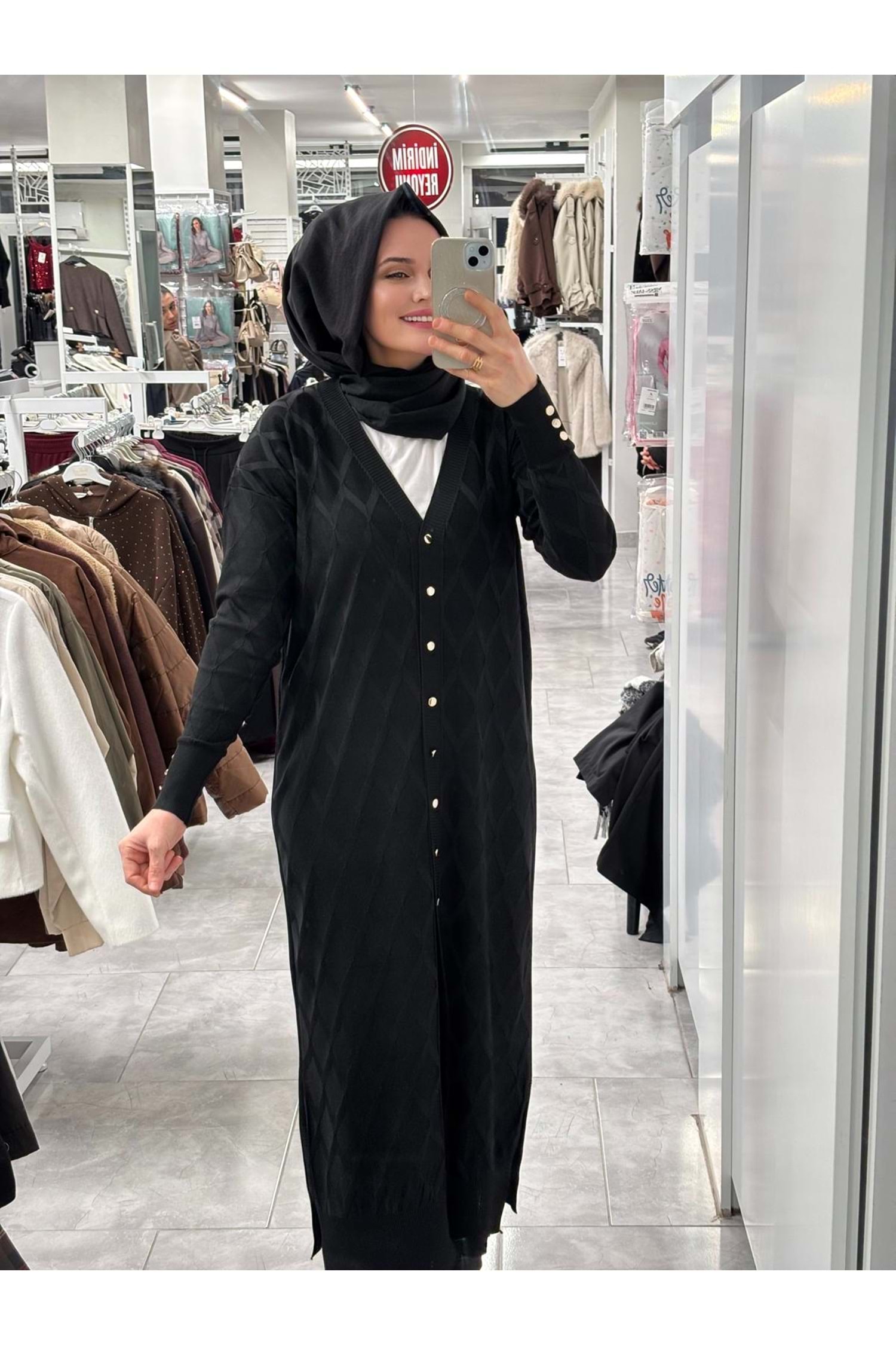 Uzun Baklava Desen Hırka 3295 - Siyah - TEK BEDEN - AZRA07491-59200