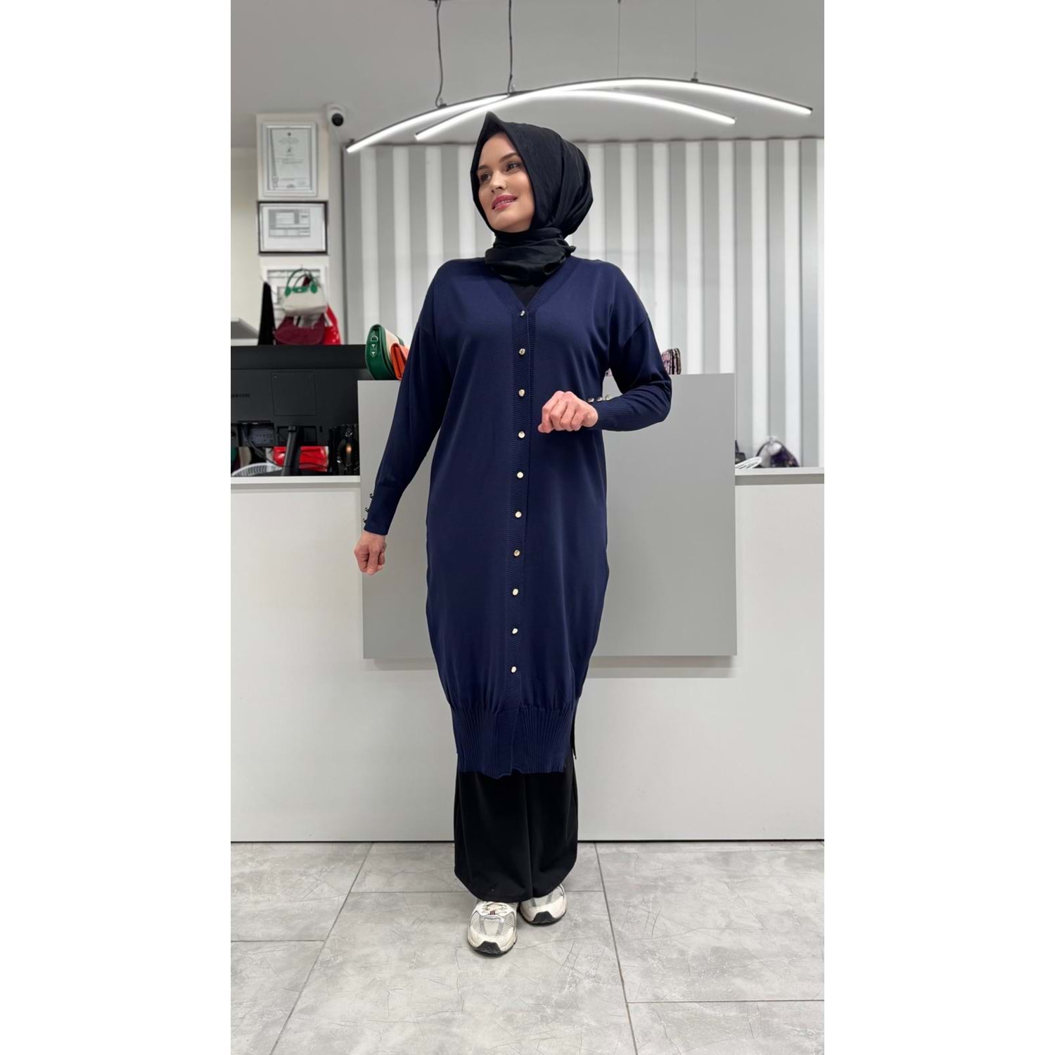 Uzun Düz Merserize Hırka 3250 - Lacivert - TEK BEDEN