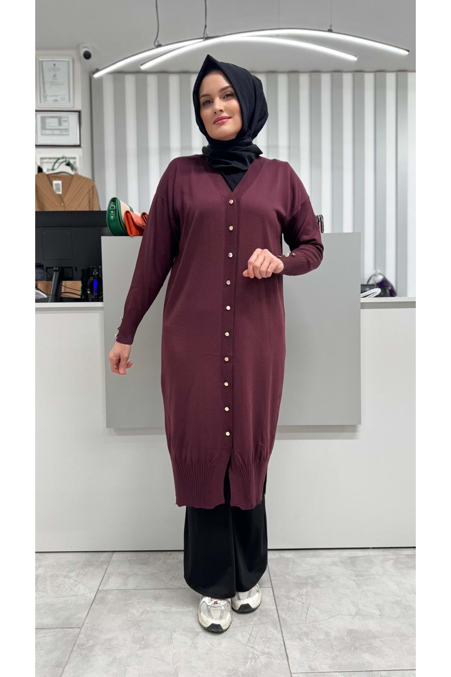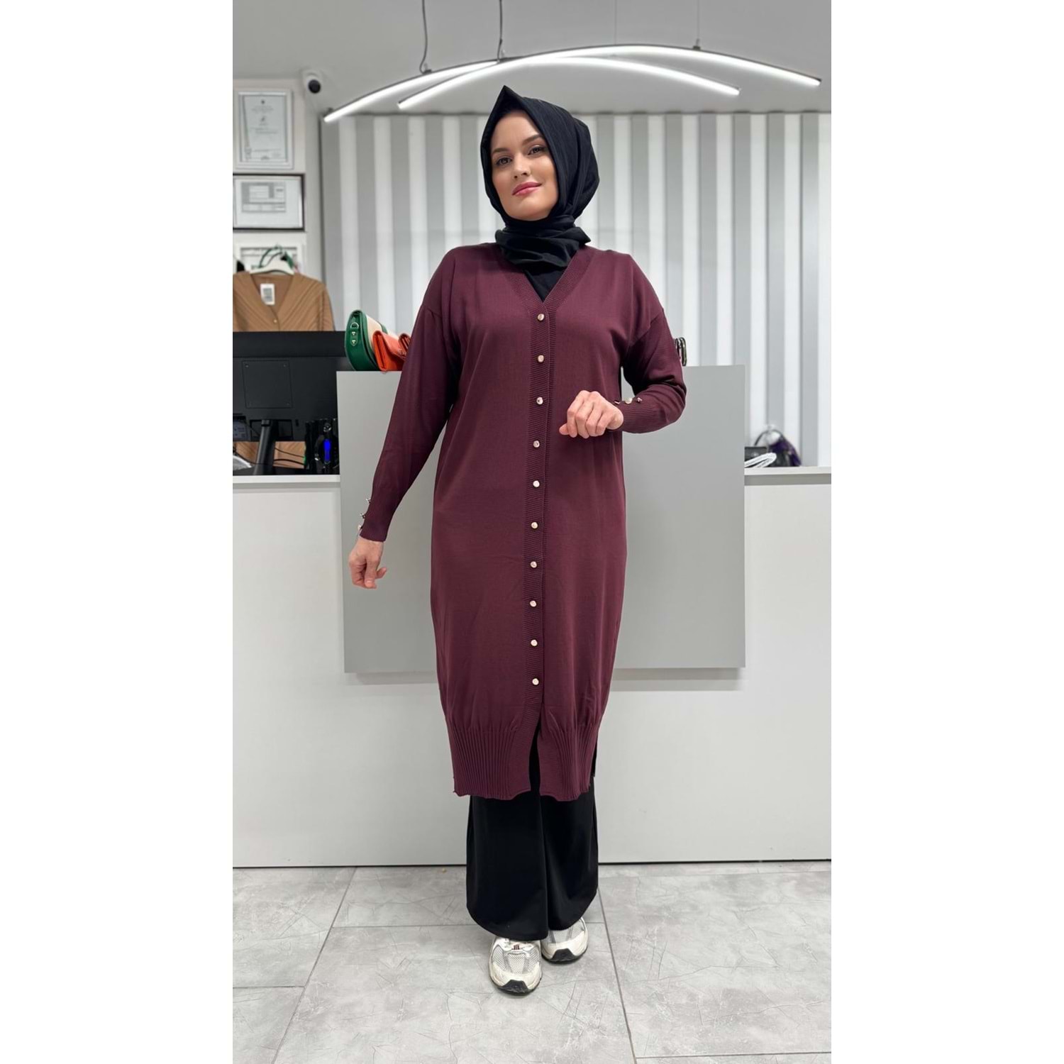 Uzun Düz Merserize Hırka 3250 - Mürdüm - TEK BEDEN