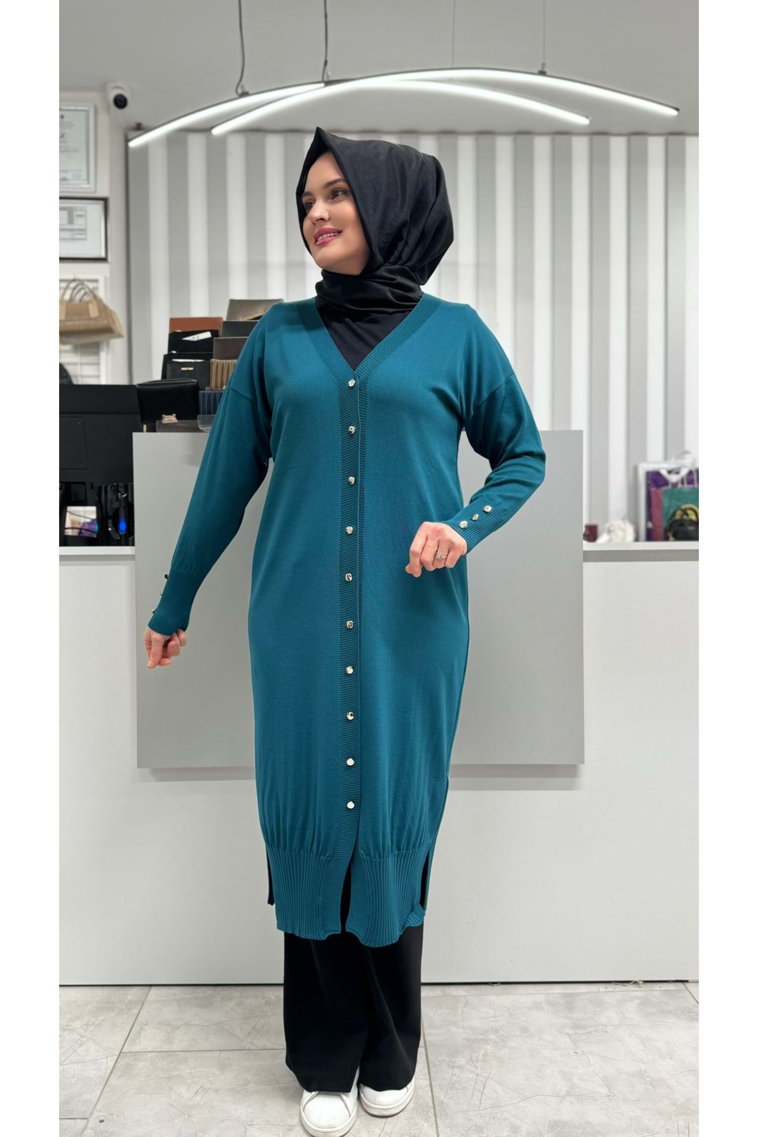 Uzun Düz Merserize Hırka 3250 - Petrol Mavi - TEK BEDEN - AZRA06904-58210