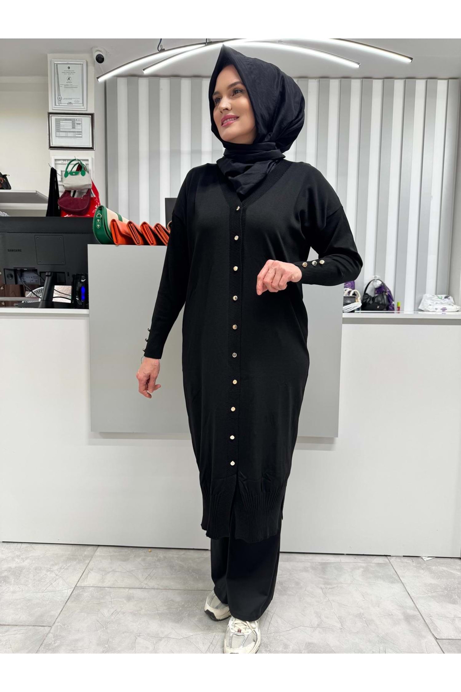 Uzun Düz Merserize Hırka 3250 - Siyah - TEK BEDEN