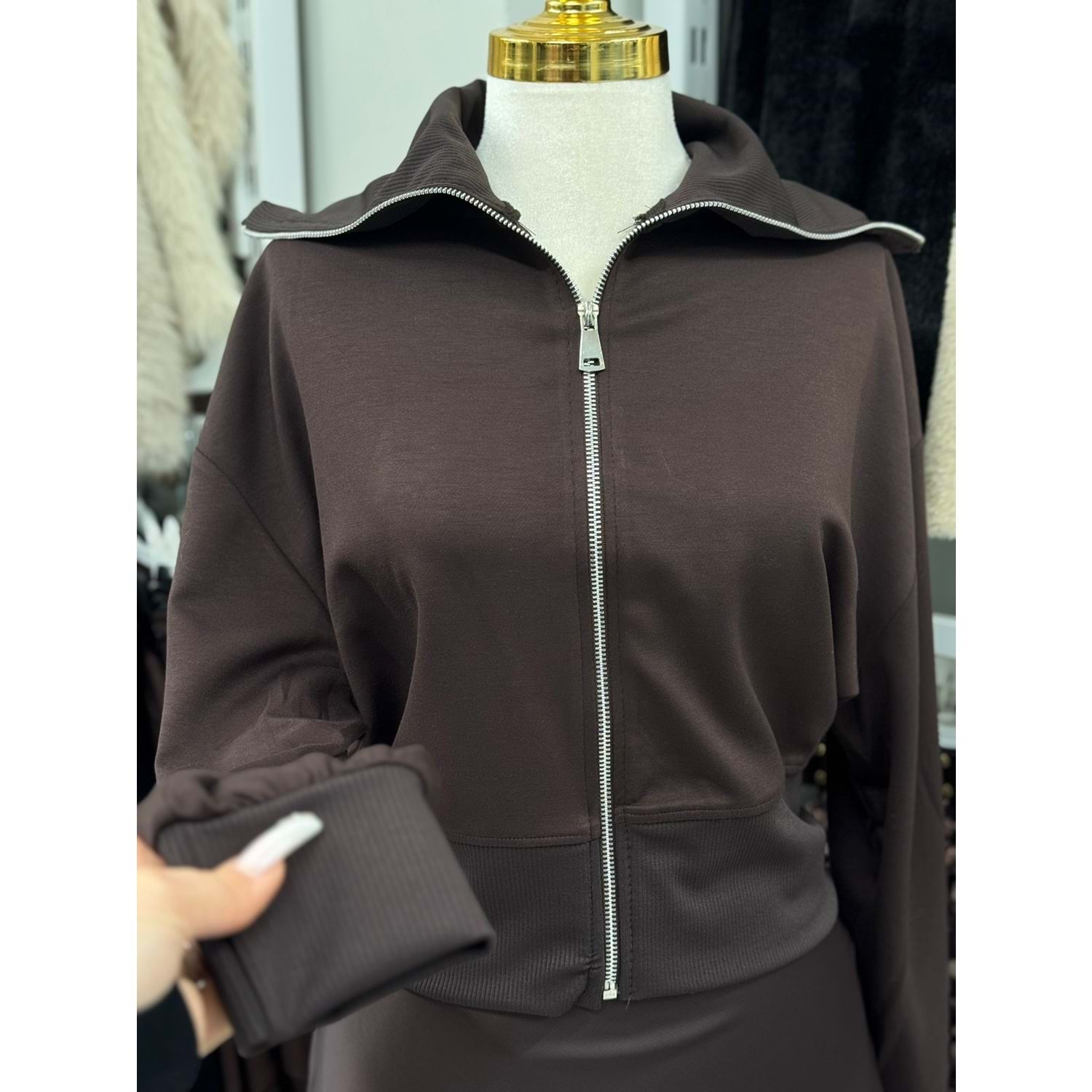 Yaka ve Etek Ucu Ribanalı Hırka 10253 - Acı Kahve - M - AZRA07359-Acı Kahve-M
