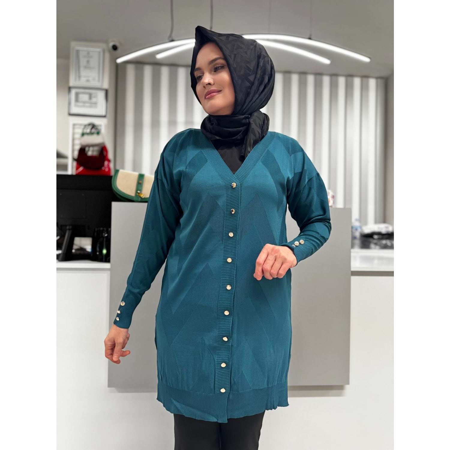 Zikzak Desenli Merserize Hırka 1420 - Petrol Mavi - TEK BEDEN