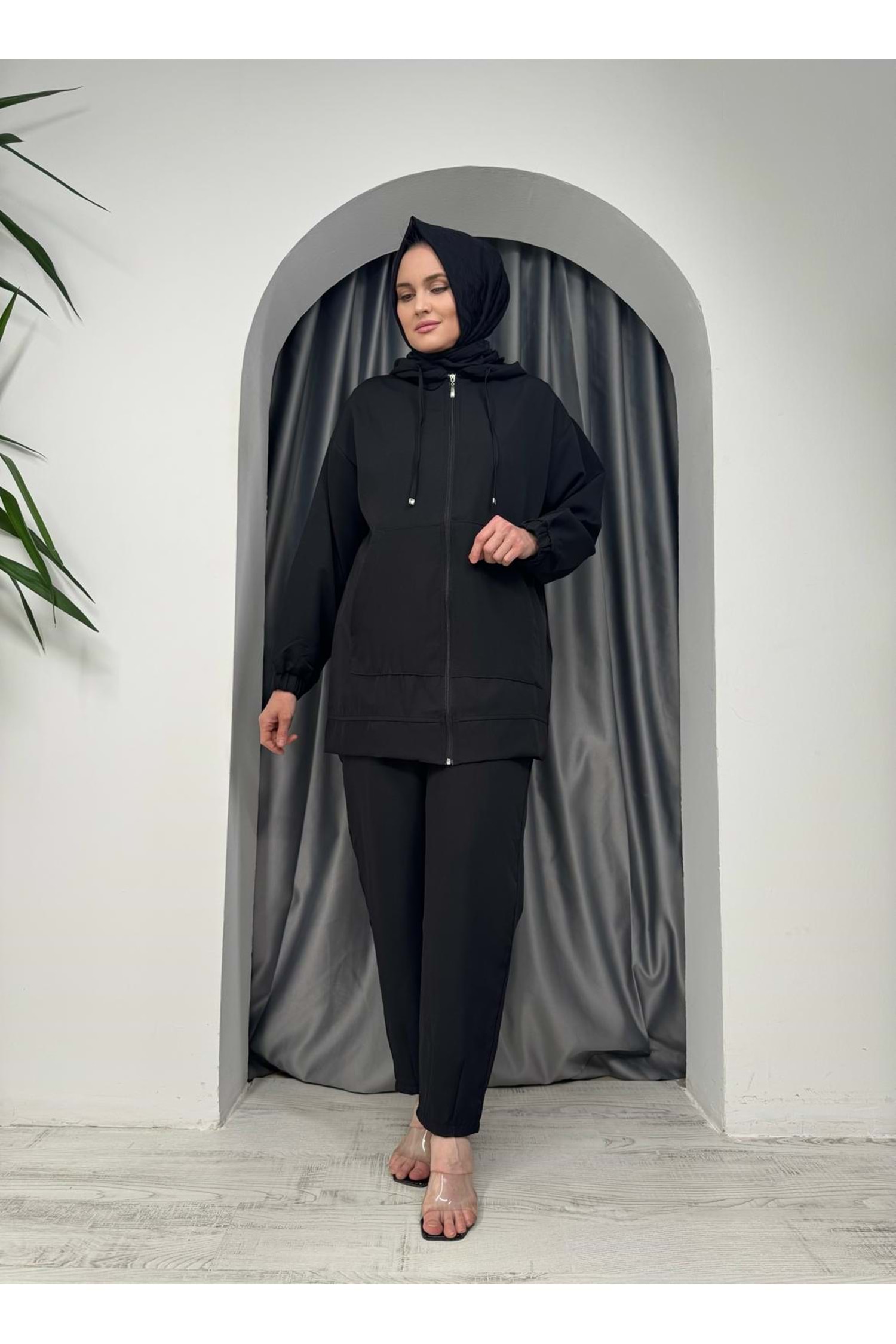 Fermuarlı Kanguru Cepli Dabıl Takım 1748 - Siyah - 38 - AZRA05458-45782