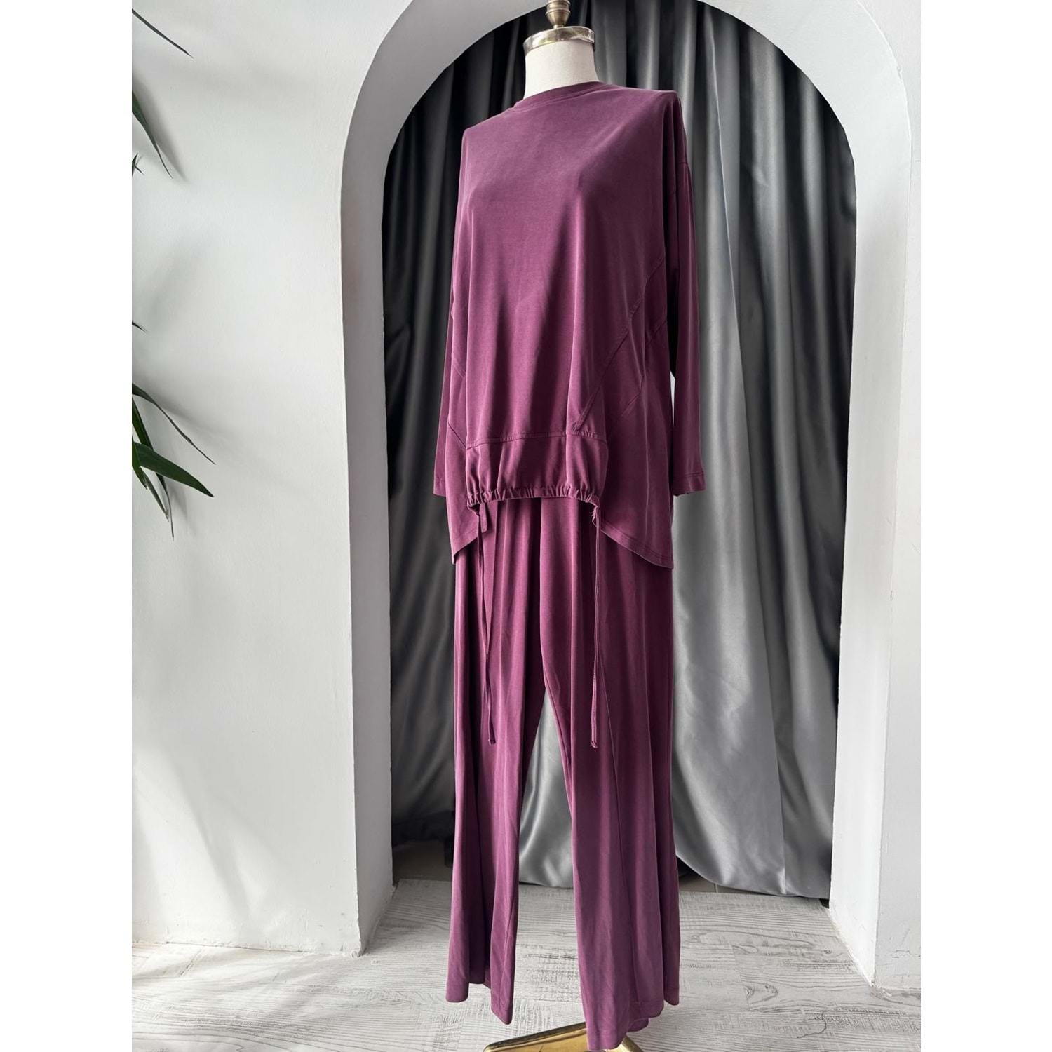 Kesik ve Büzgü Detaylı Takım 34319 - Bordo - M - AZRA05734-47262