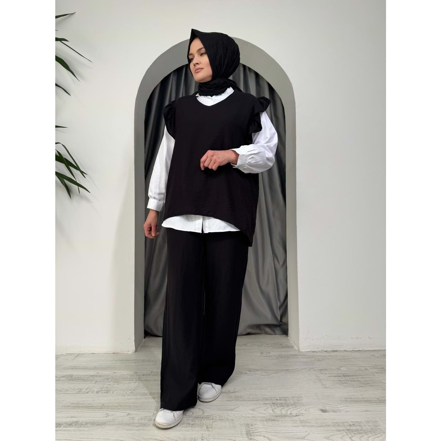 Kolları Büzgülü Üçlü Takım 25865 - Siyah - S