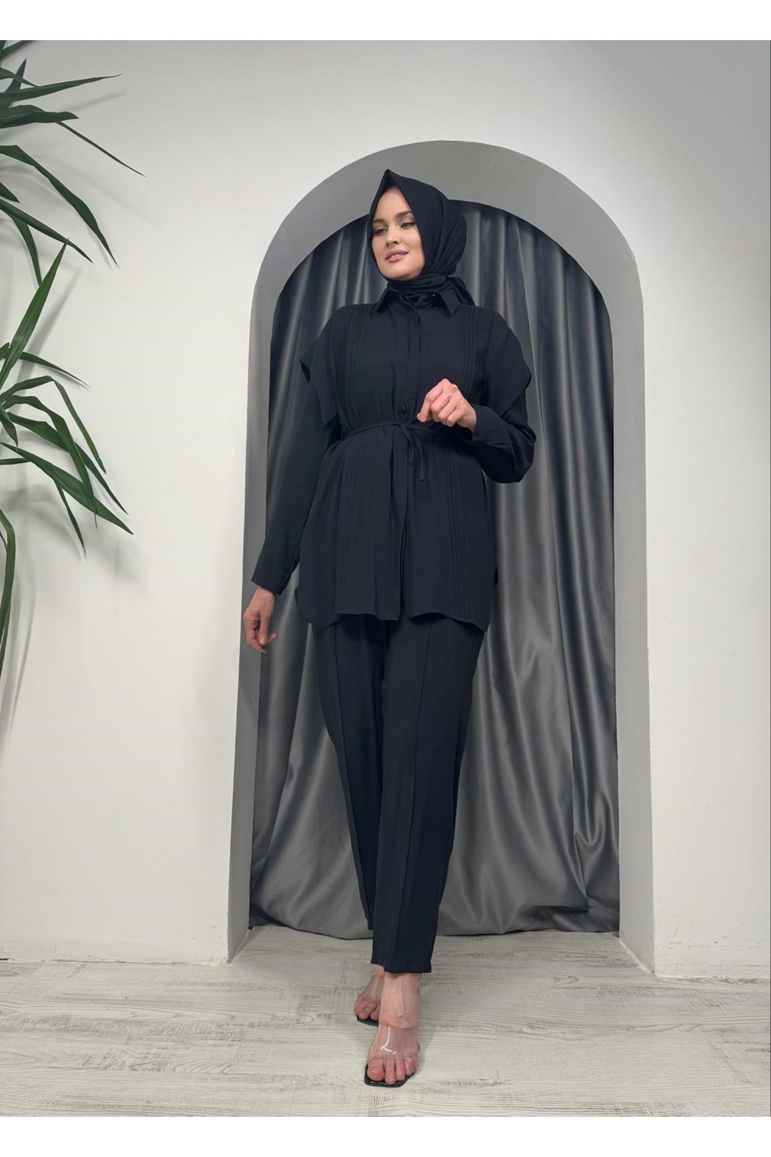 Omuz Patlı Çizgili Takım 24107 - Siyah - S - AZRA05456-45771