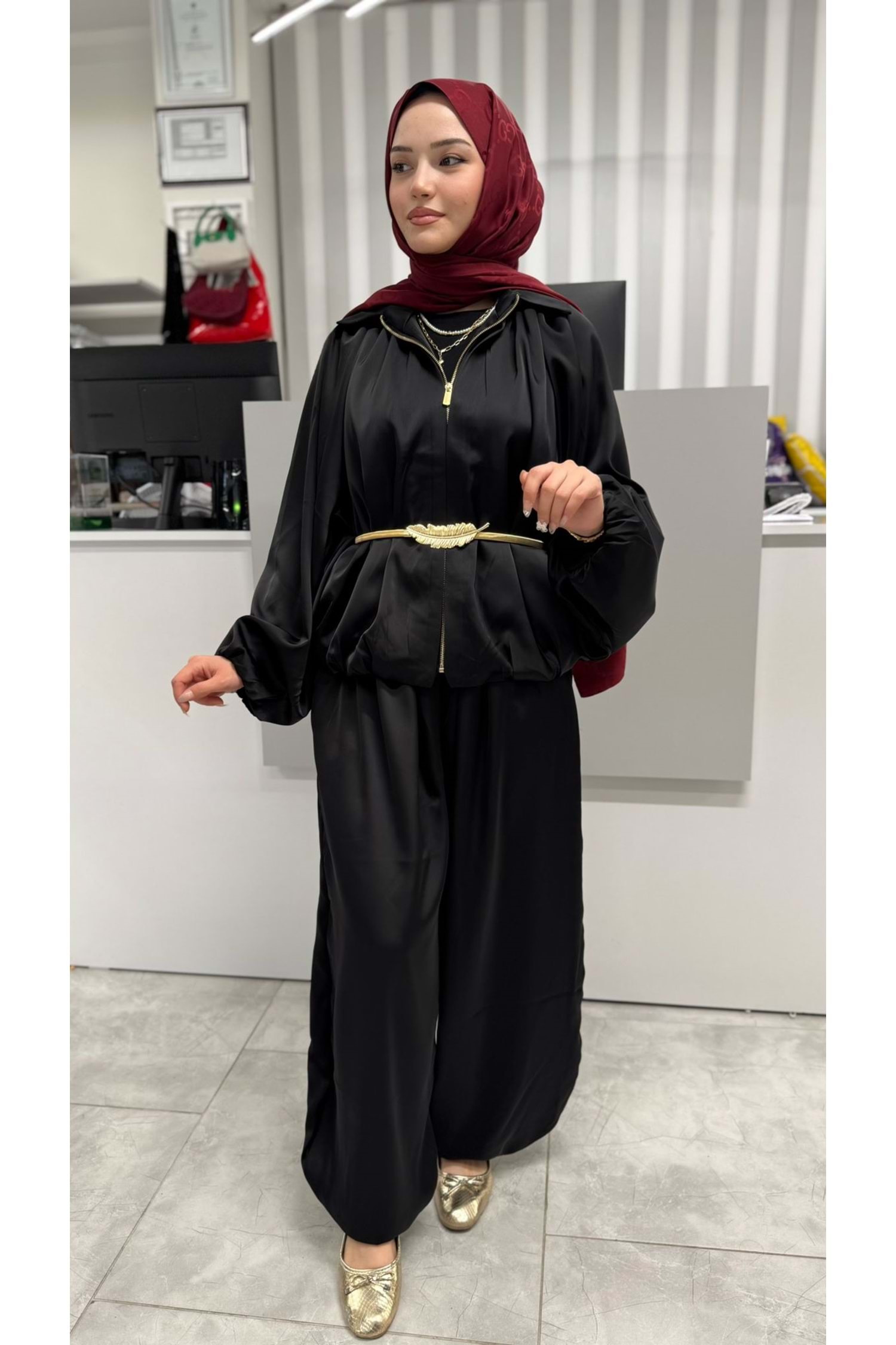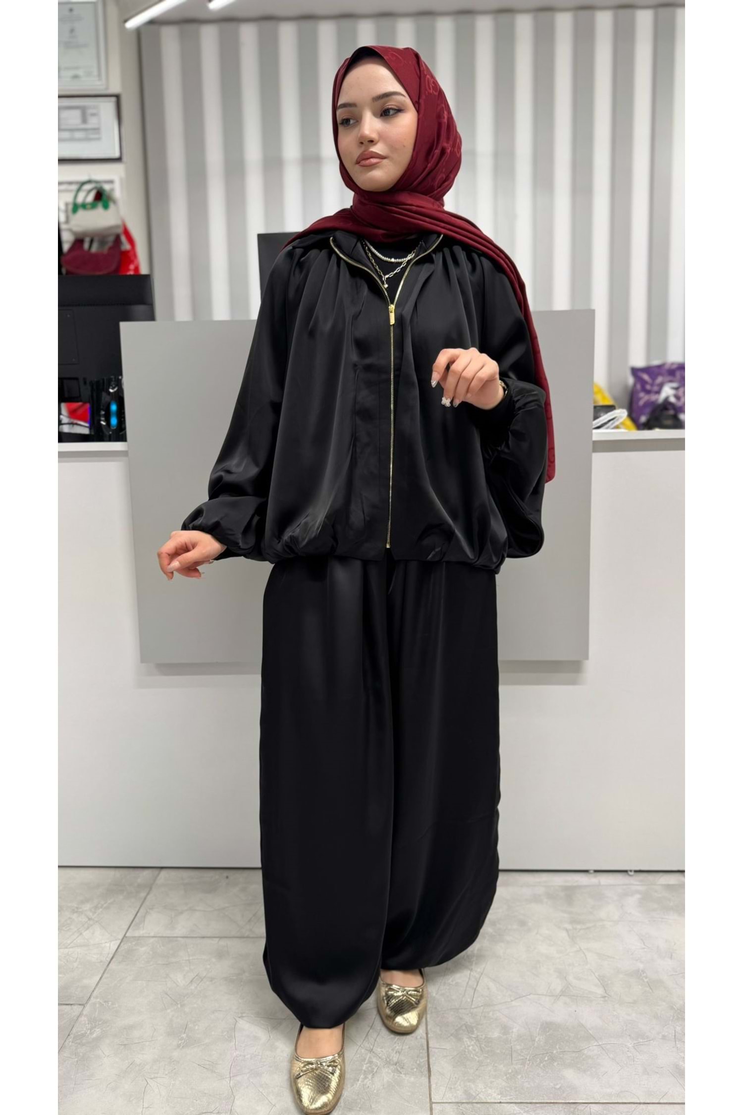 Saten Ceketli Takım 3015 - Siyah - S-M