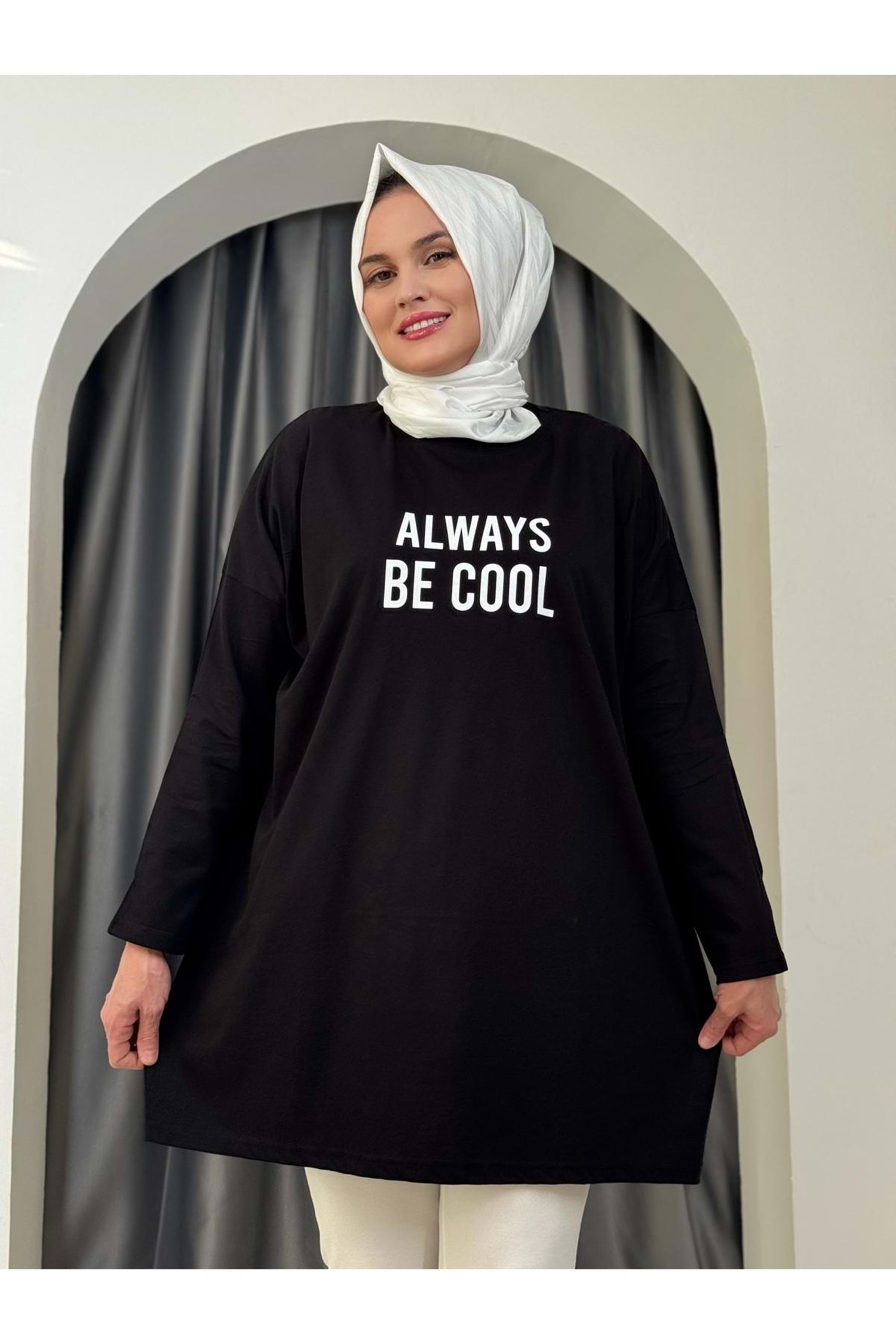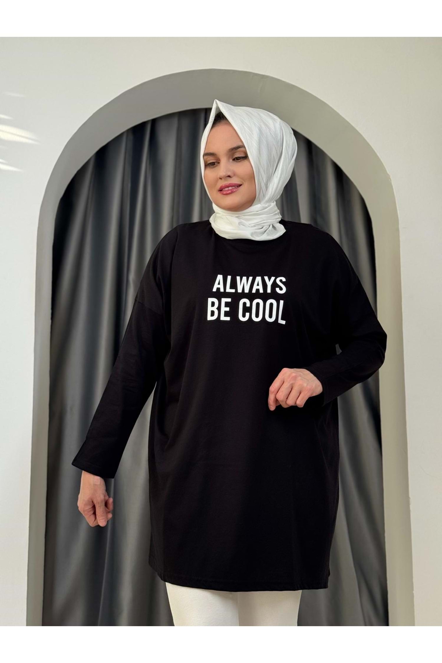 Always Baskılı Tunik 2356 - Siyah - TEK BEDEN