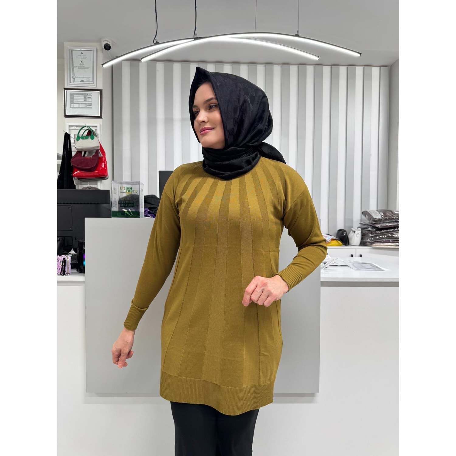 Büyük Şeritli Merserize Tunik 3190 - Yağ Yeşili - TEK BEDEN