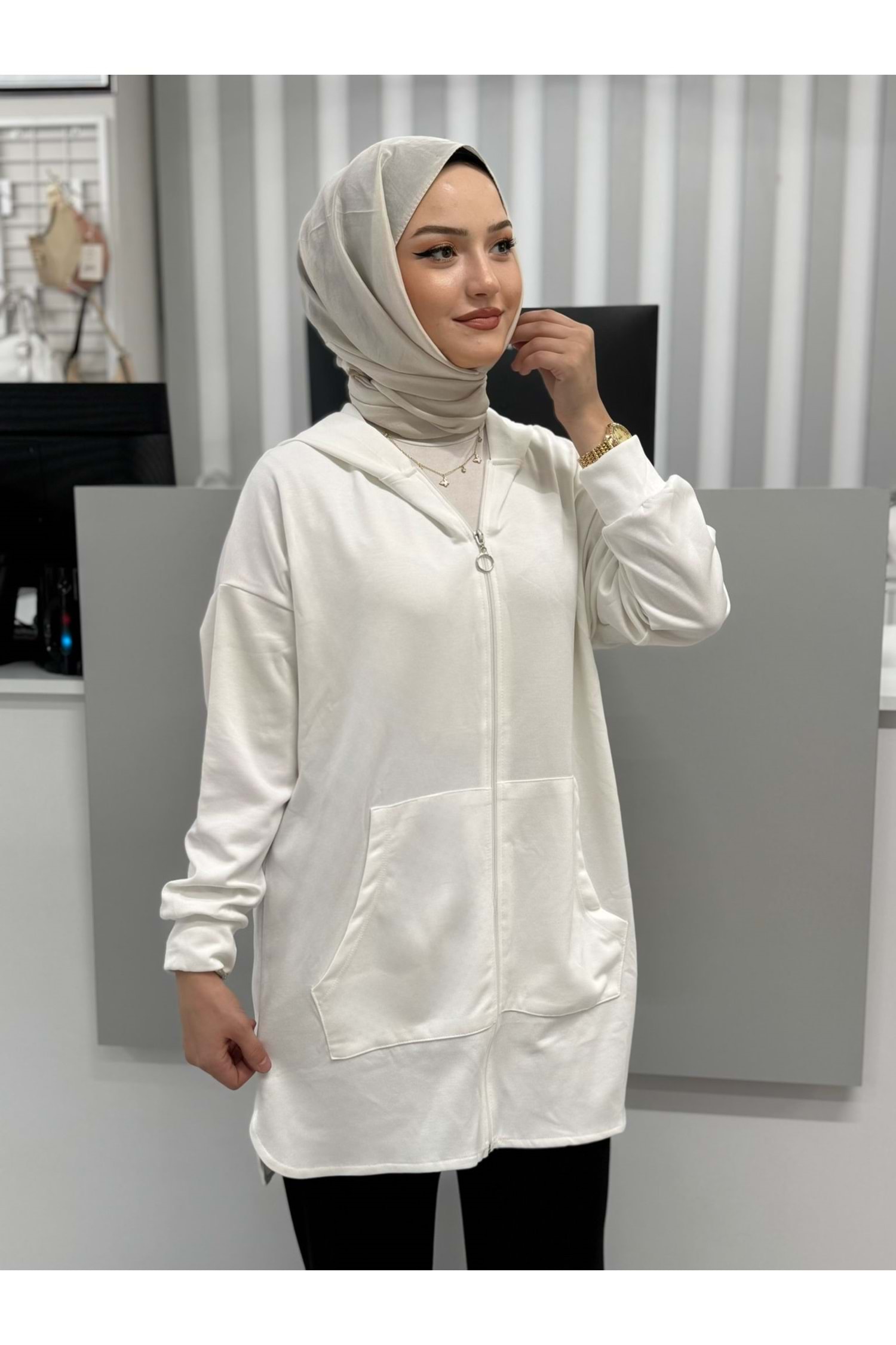 Cepli Kapşonlu Tunik 26129 - Ekru - S-M