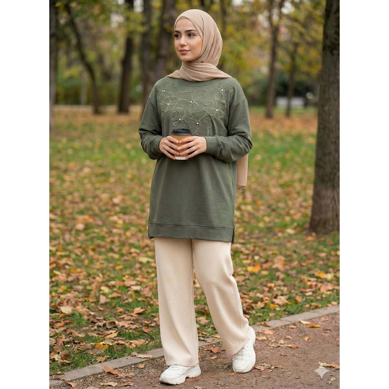 Çiçek Nakışlı Taş Detaylı Tunik 26810 - Lacivert - L