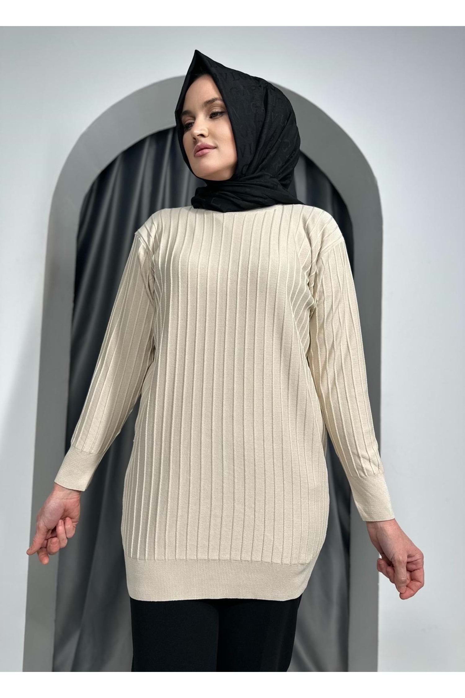 Çıtalı Merserize Tunik 3185 - Bej - TEK BEDEN - AZRA05424-45466