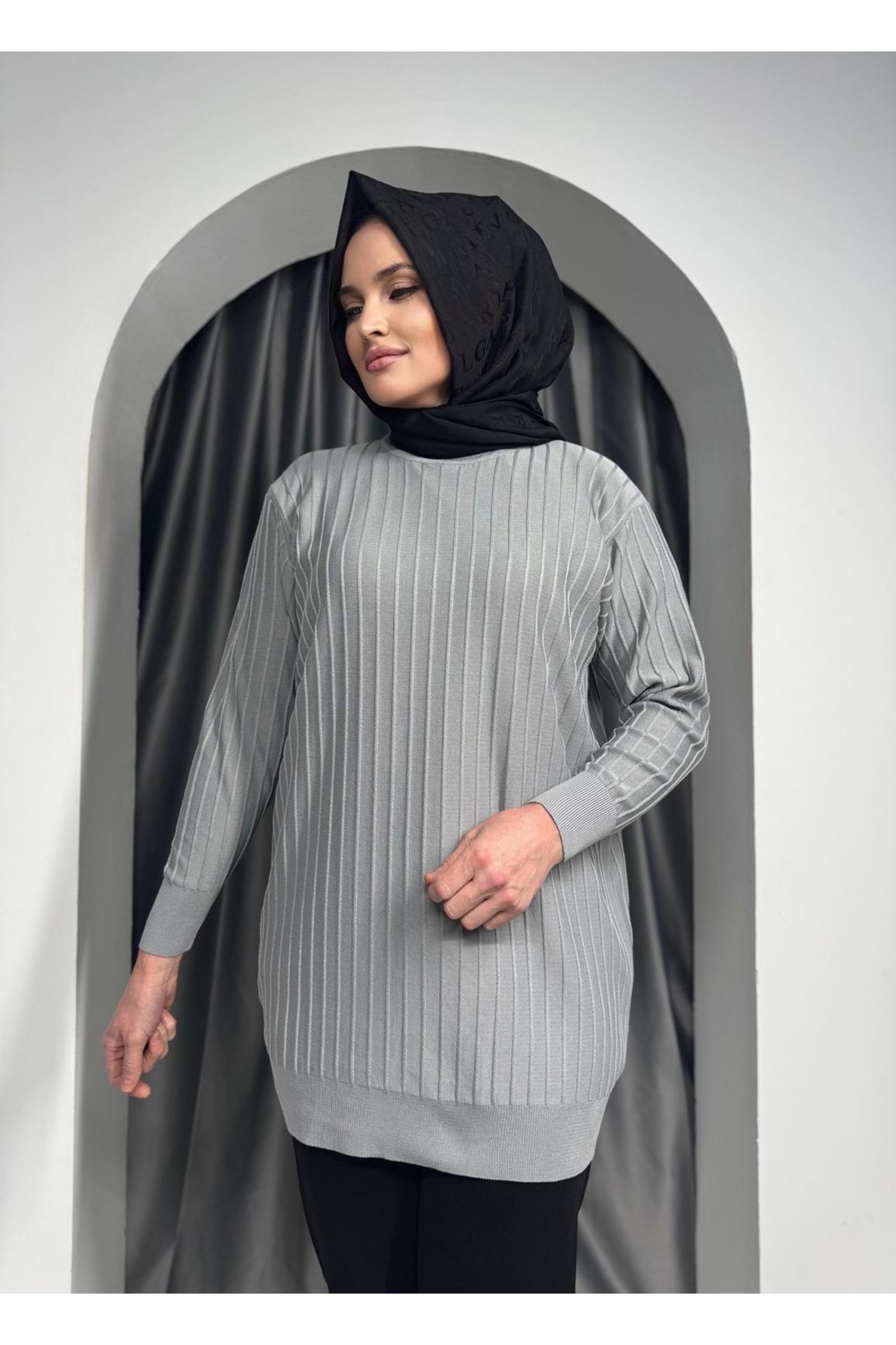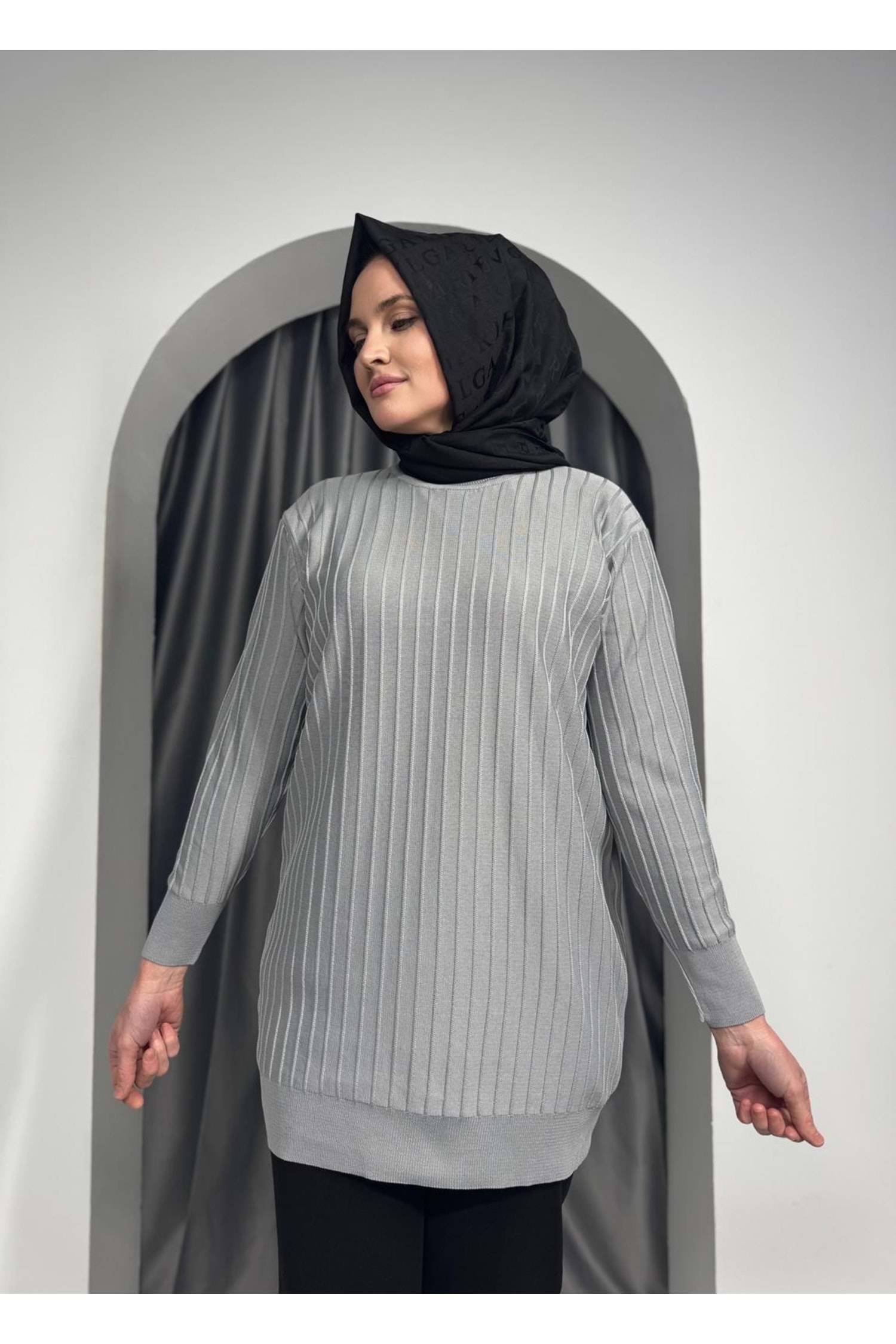 Çıtalı Merserize Tunik 3185 - Gri - TEK BEDEN - AZRA05424-45468