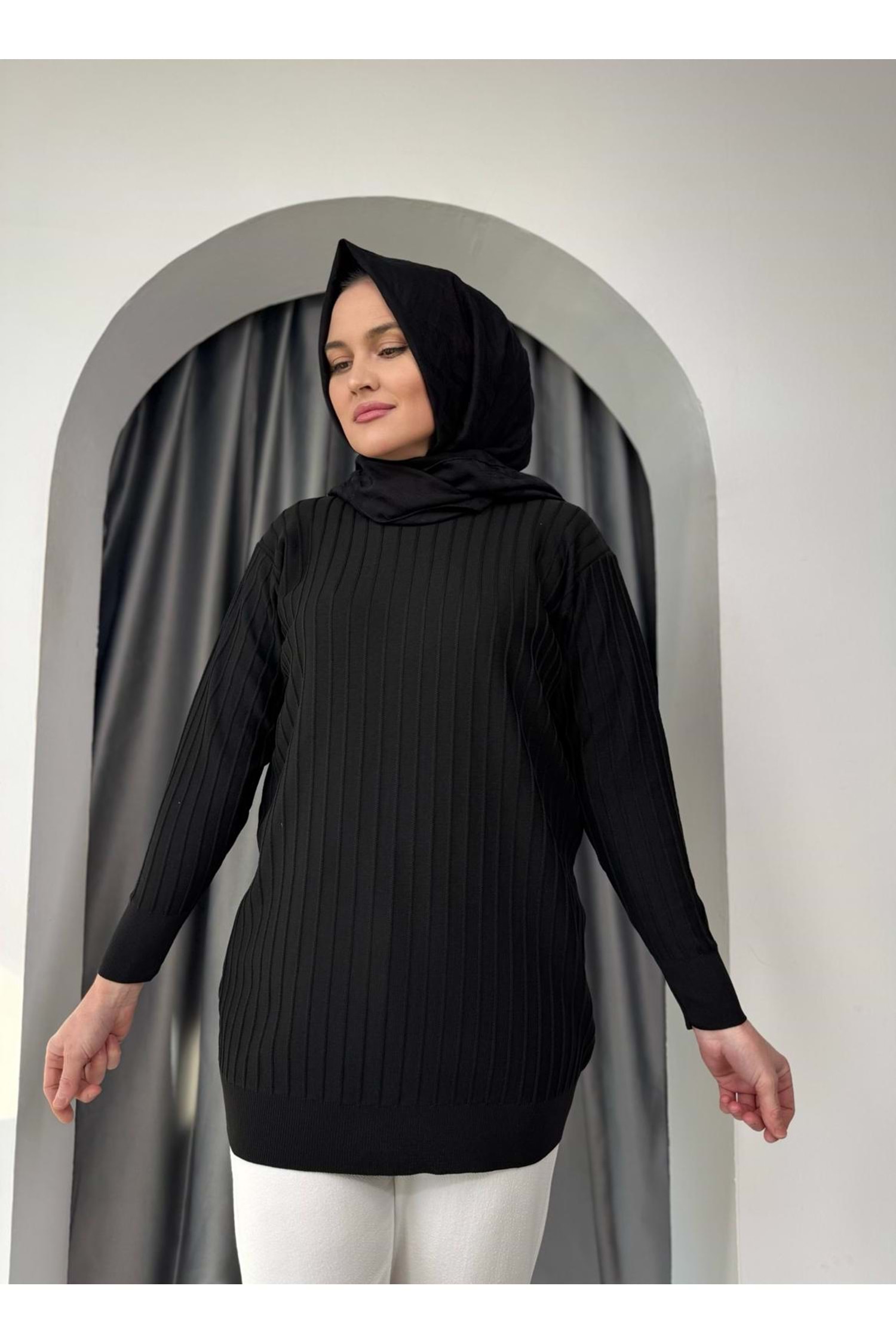Çıtalı Merserize Tunik 3185 - Siyah - TEK BEDEN - AZRA05424-45472