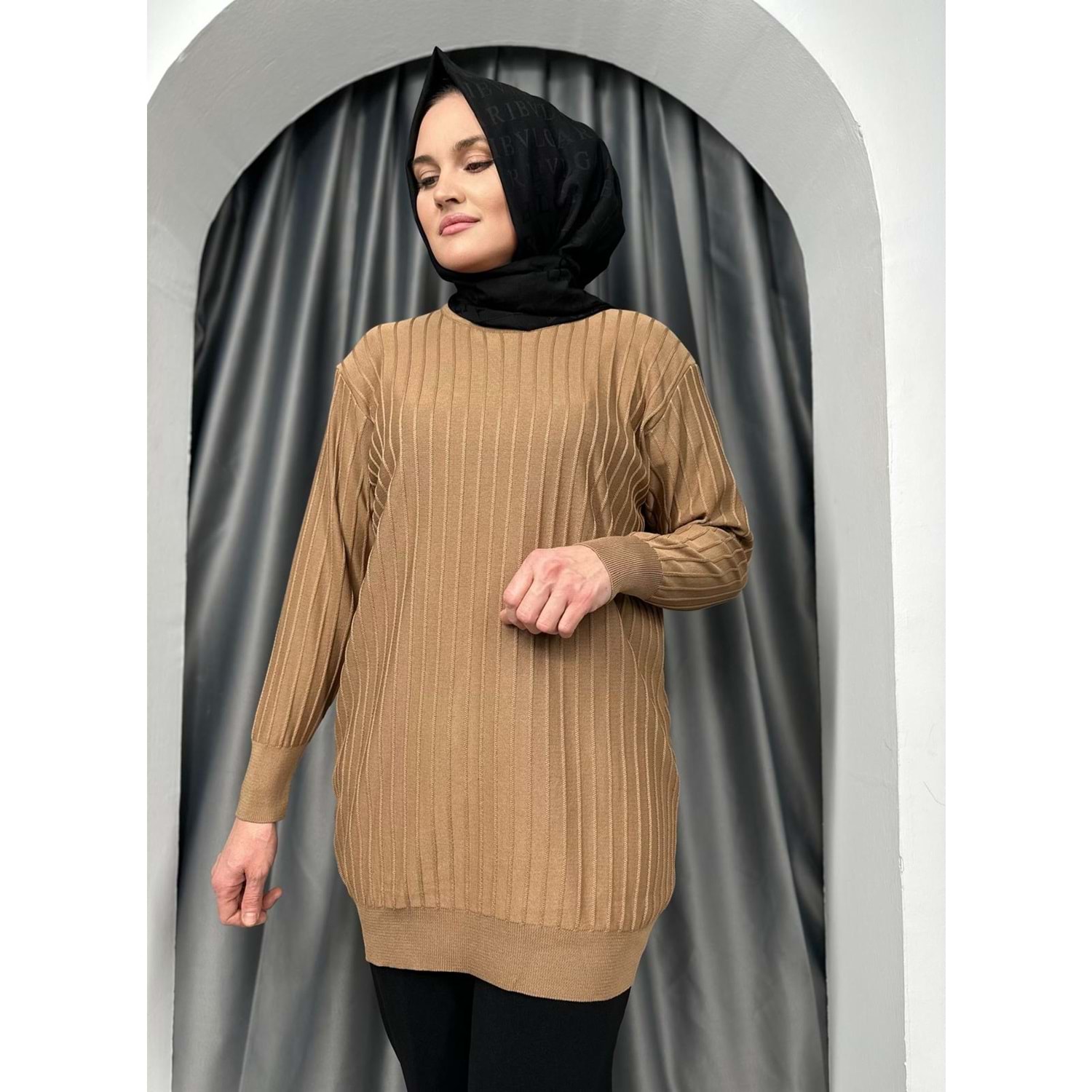 Çıtalı Merserize Tunik 3185 - Sütlü Kahve - TEK BEDEN - AZRA05424-45473