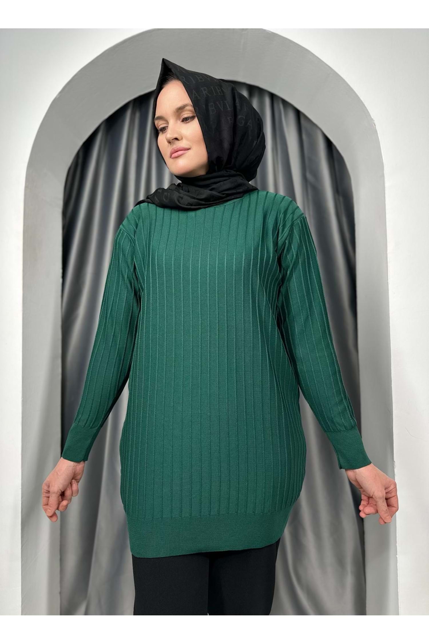 Çıtalı Merserize Tunik 3185 - Zümrüt Yeşili - TEK BEDEN - AZRA05424-45475