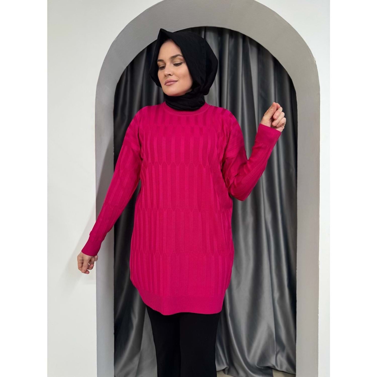 Desenli Merserize Tunik 3174 - Pembe - TEK BEDEN - AZRA05354-44646