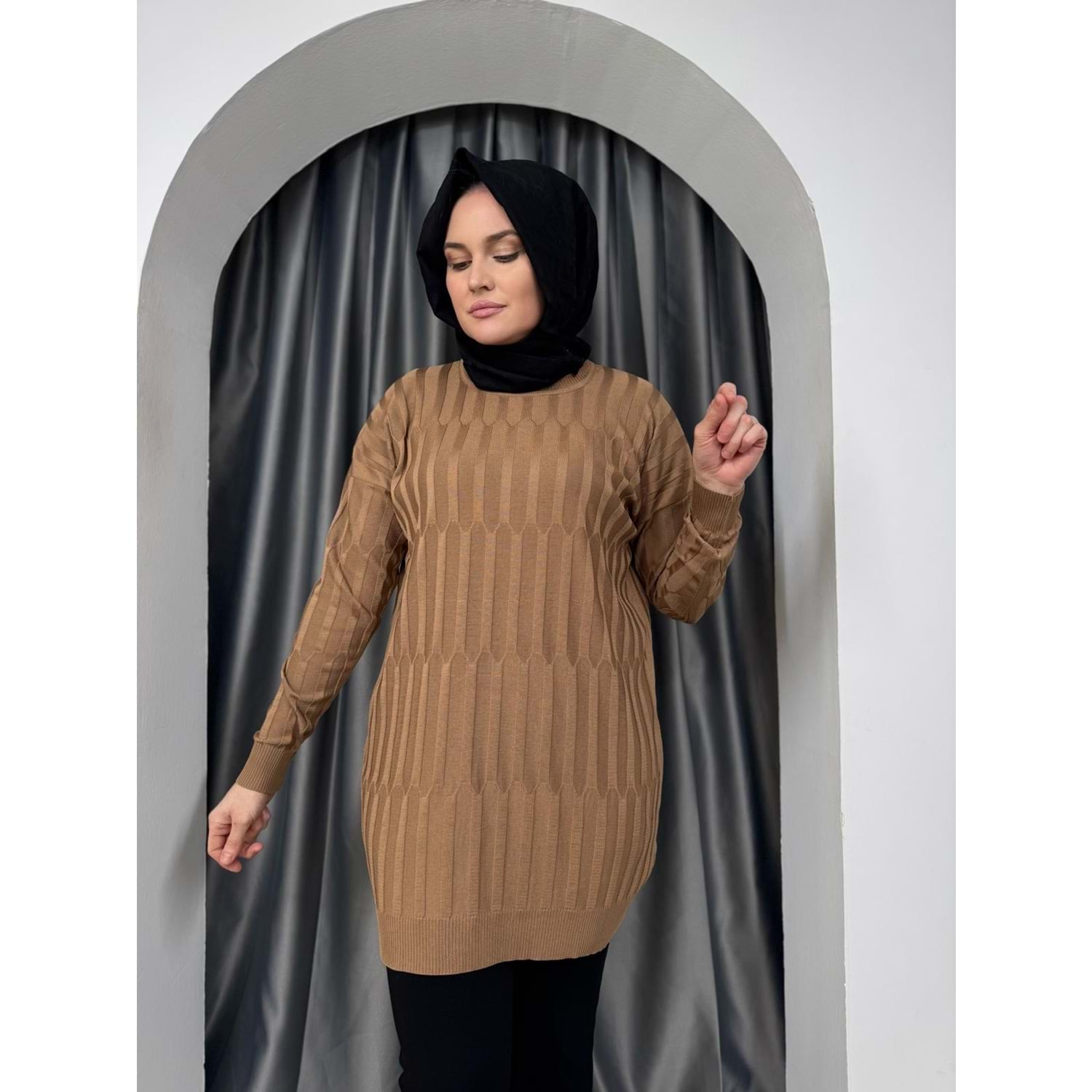 Desenli Merserize Tunik 3174 - Sütlü Kahve - TEK BEDEN - AZRA05354-44649