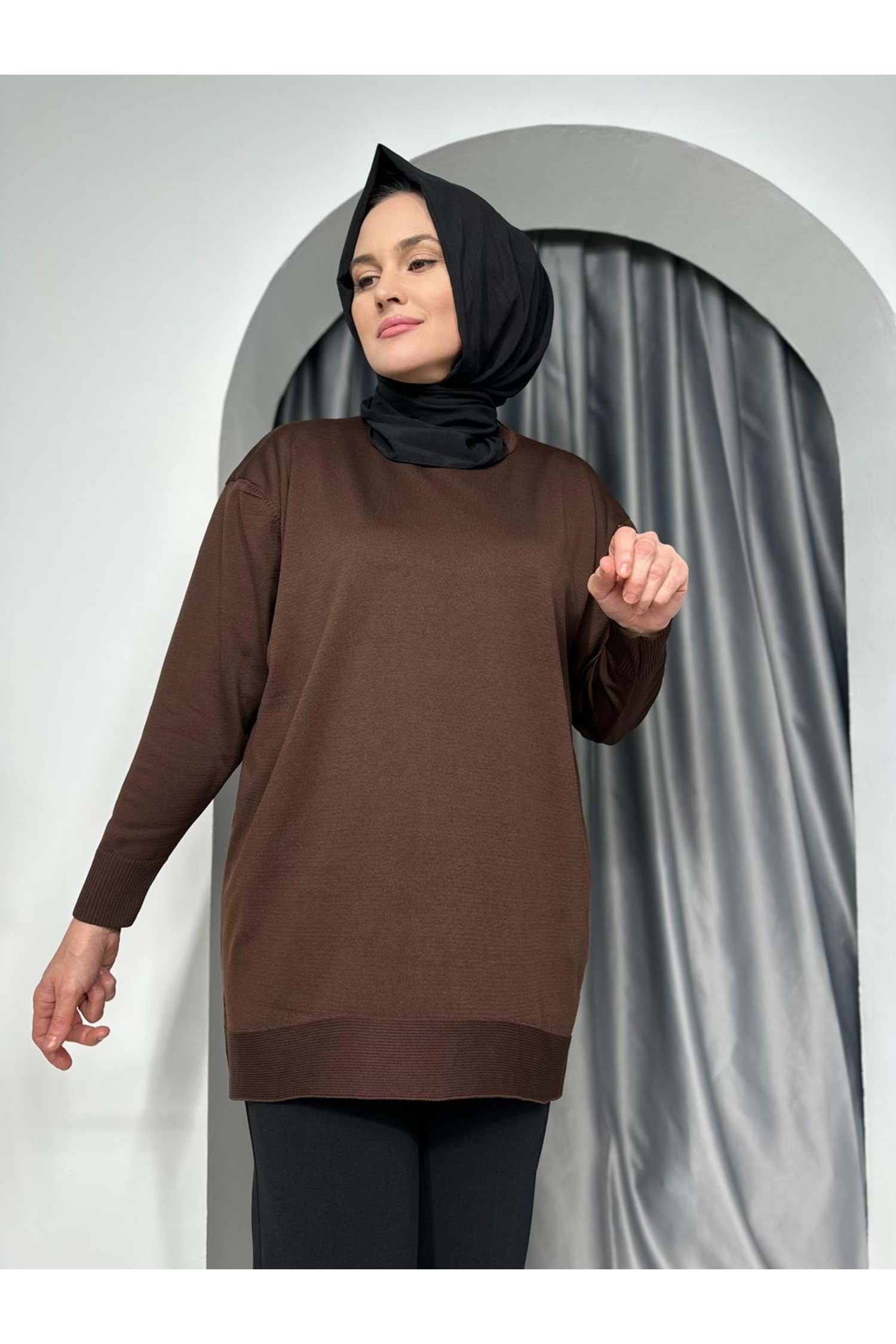 Düz Merserize Tunik 3177 - Acı Kahve - TEK BEDEN - AZRA05401-45120