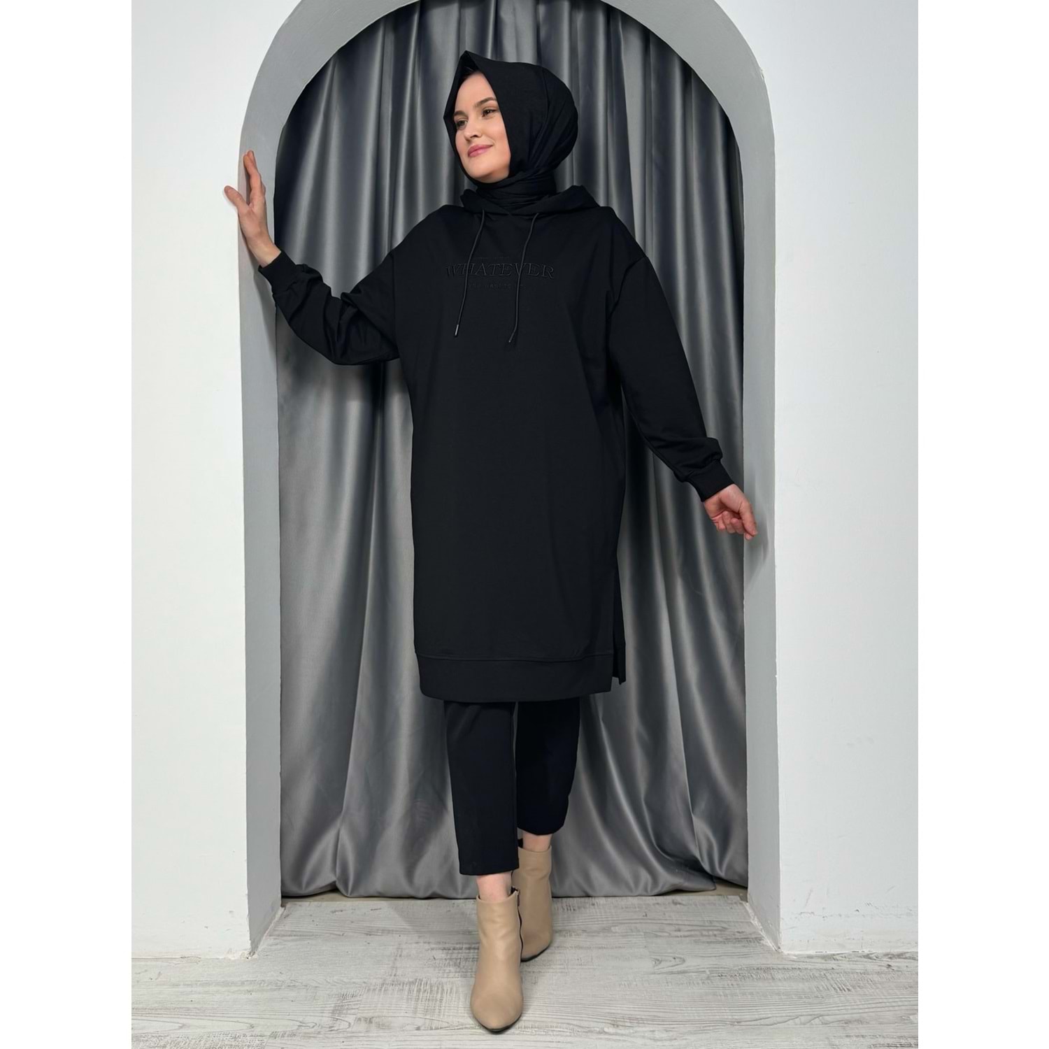 İkoll Tonaton Nakışlı Kapişonlu Tunik 33201 - Siyah - TEK BEDEN