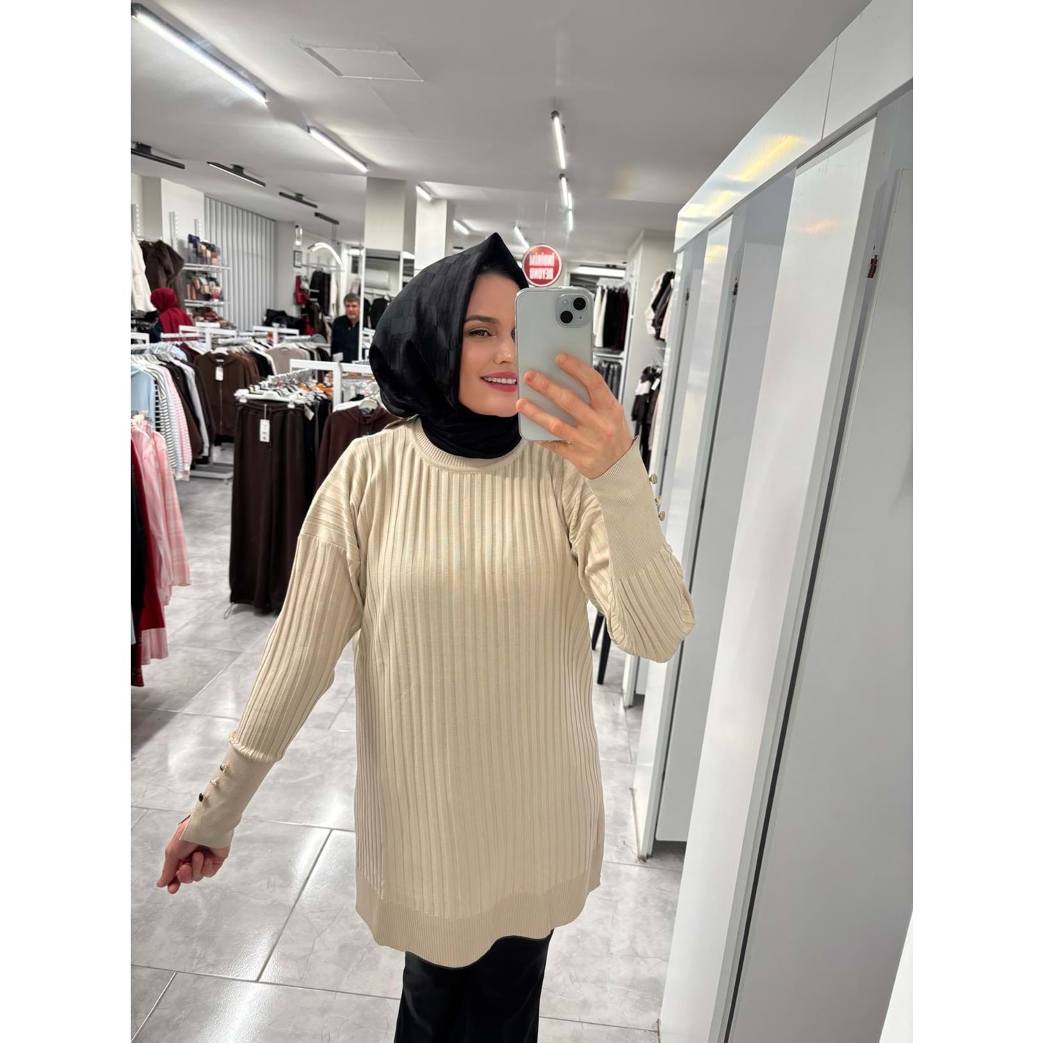 İnce Çizgili Merserize Tunik 3170 - Bej - TEK BEDEN