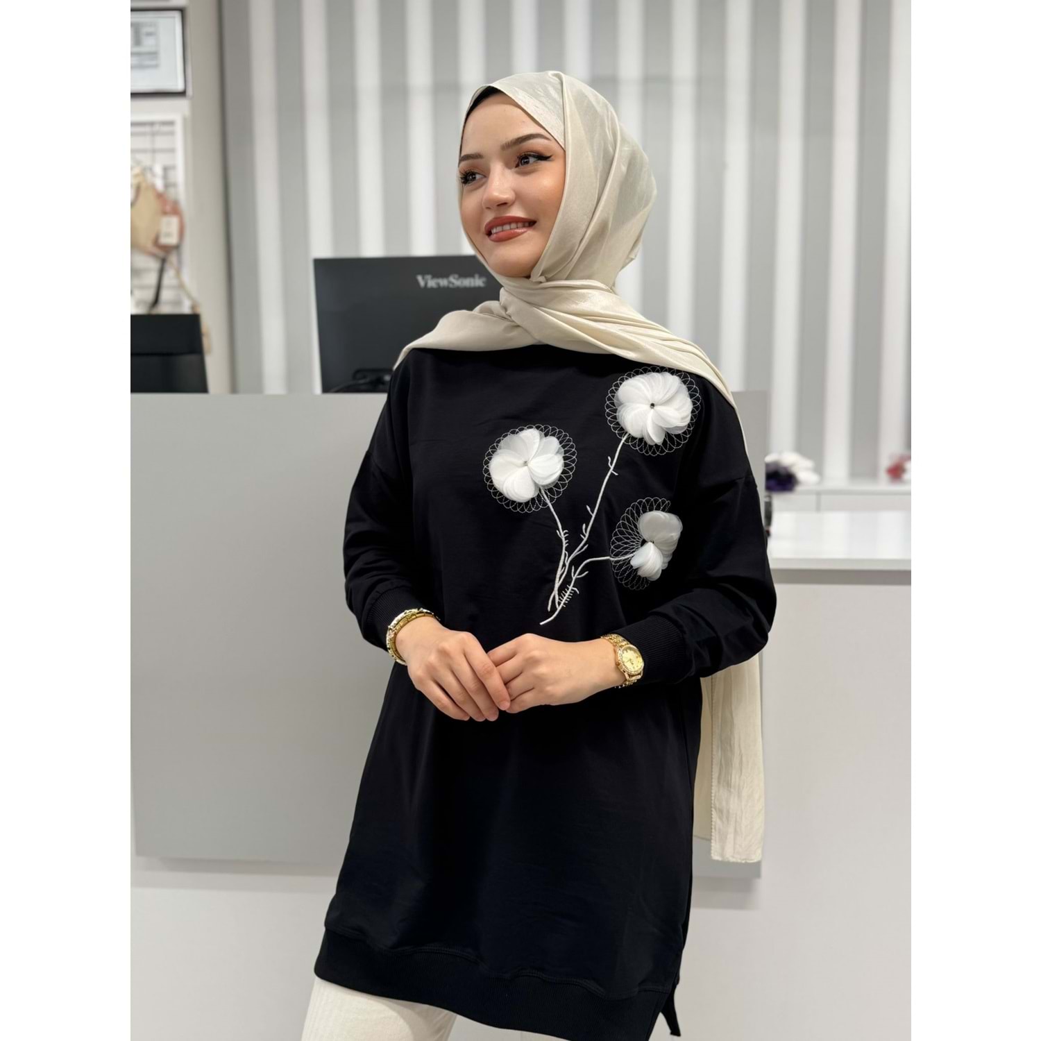 Nakışlı Çiçekli Tunik 26123 - Siyah - S-M